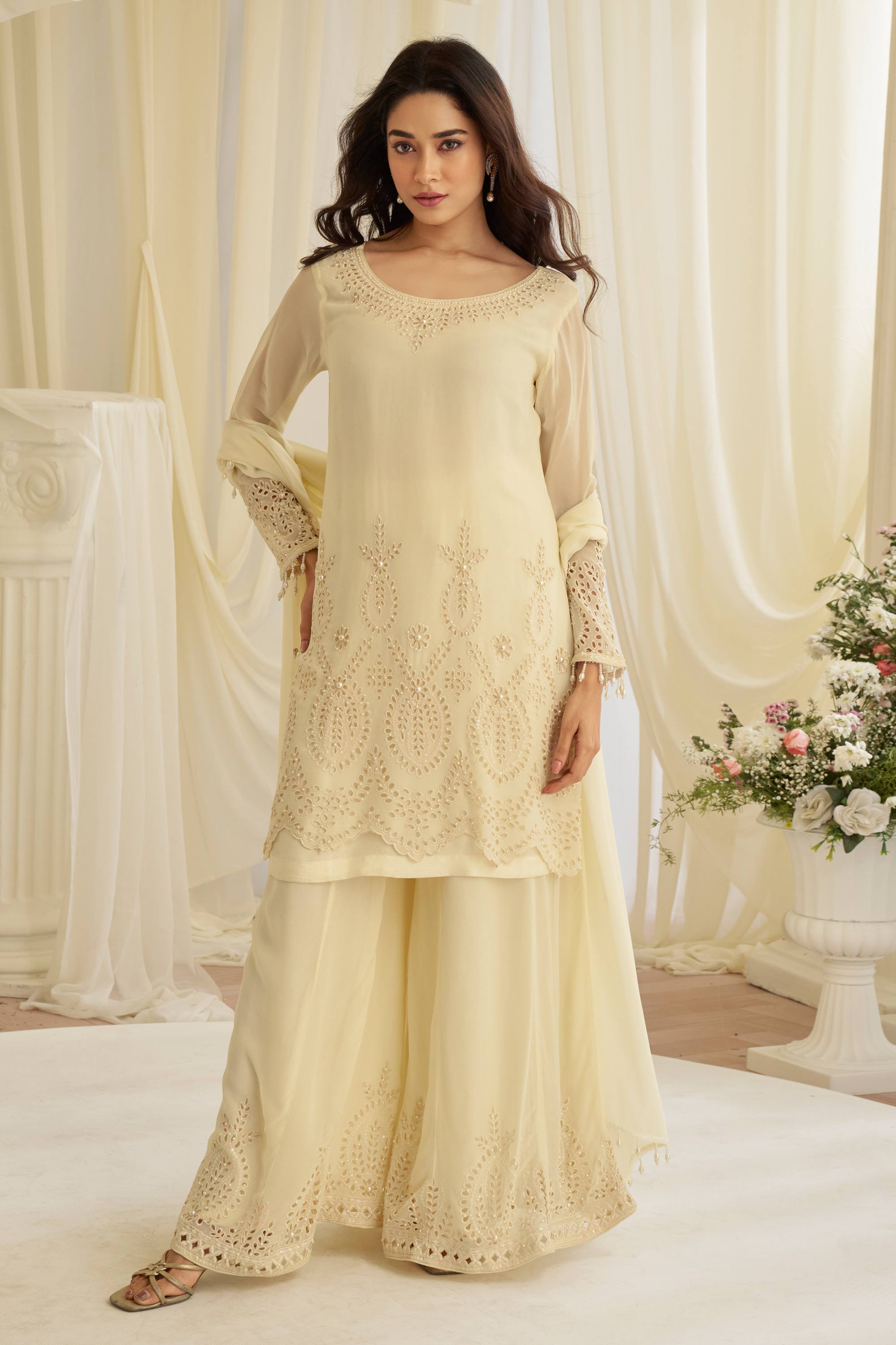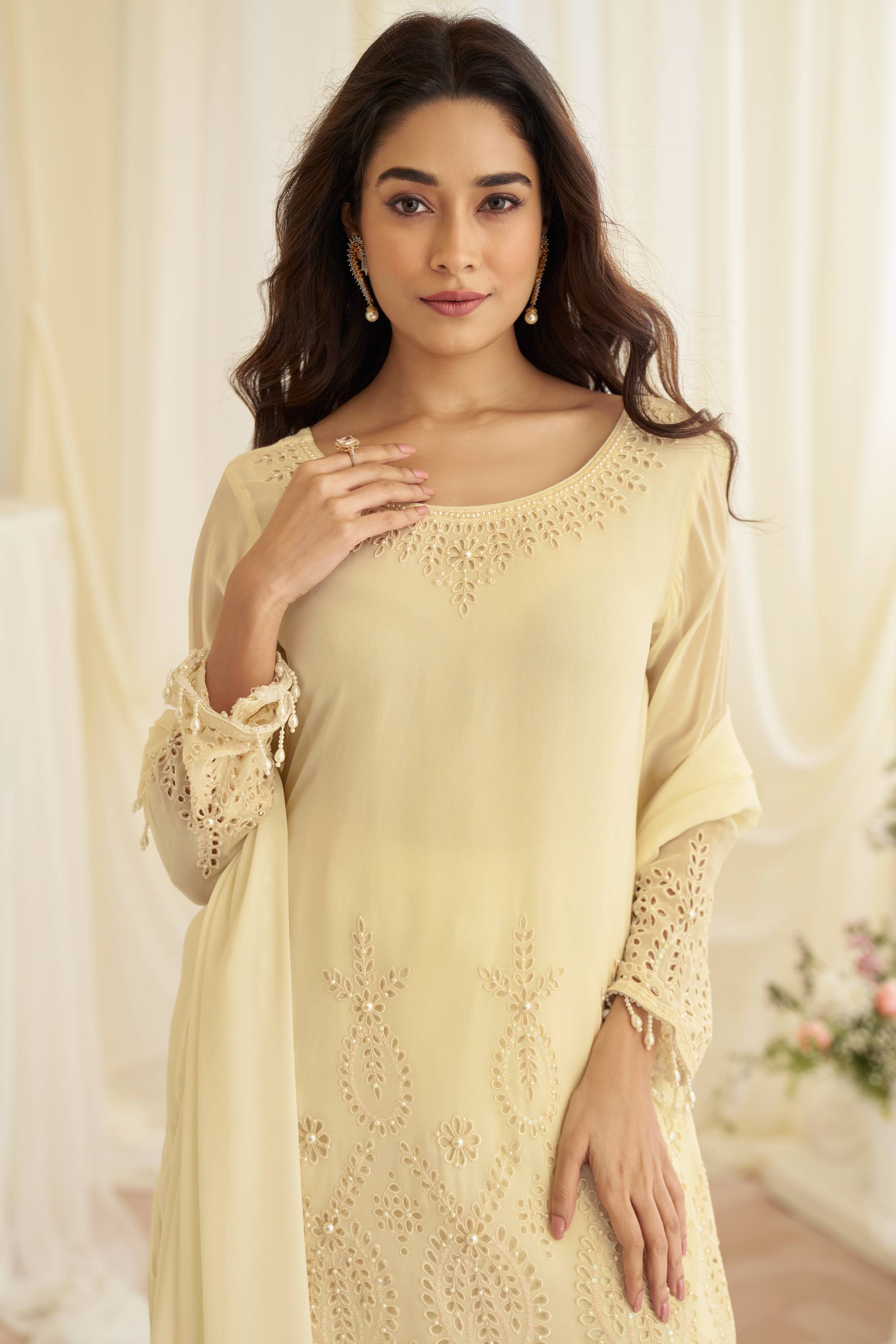 Lovely Beige Embroidery Work Designer Palazzo Salwar Kameez