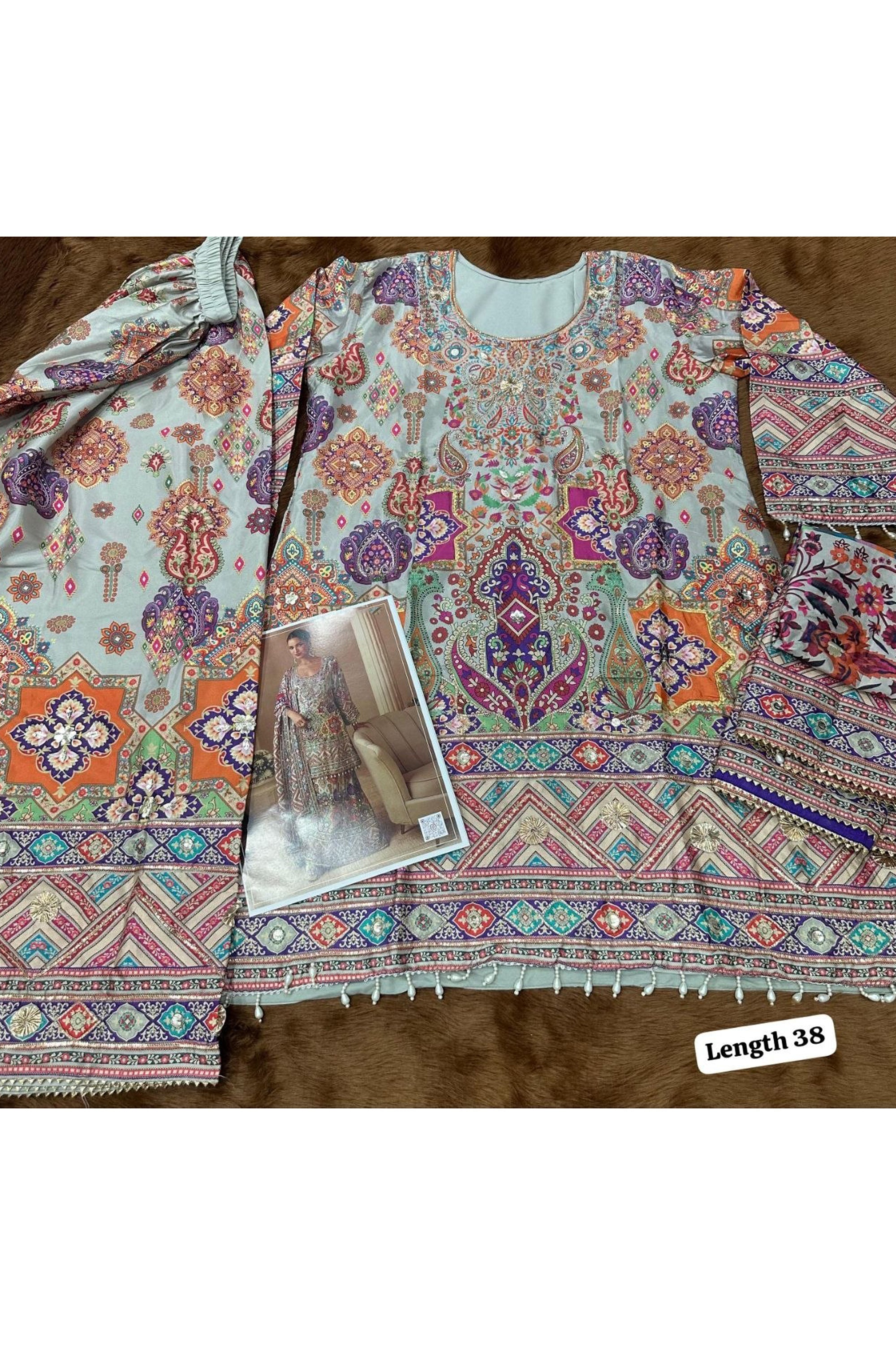 - If you have ordered multiple outfits with stitching services, we can provide one sample stitched outfit ON REQUEST (by contacting us) for fitting and style approval. Once you confirm the size and fit, we will proceed with stitching the remaining pieces accordingly.