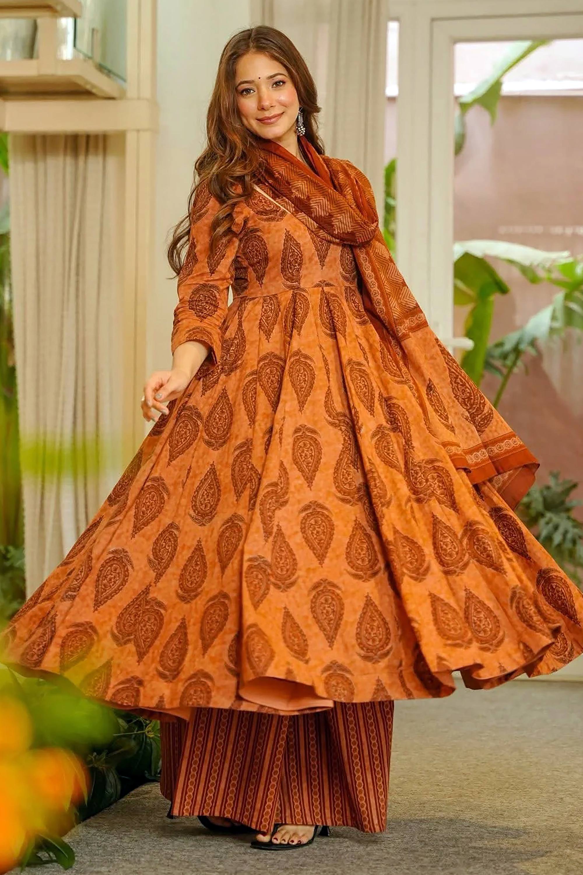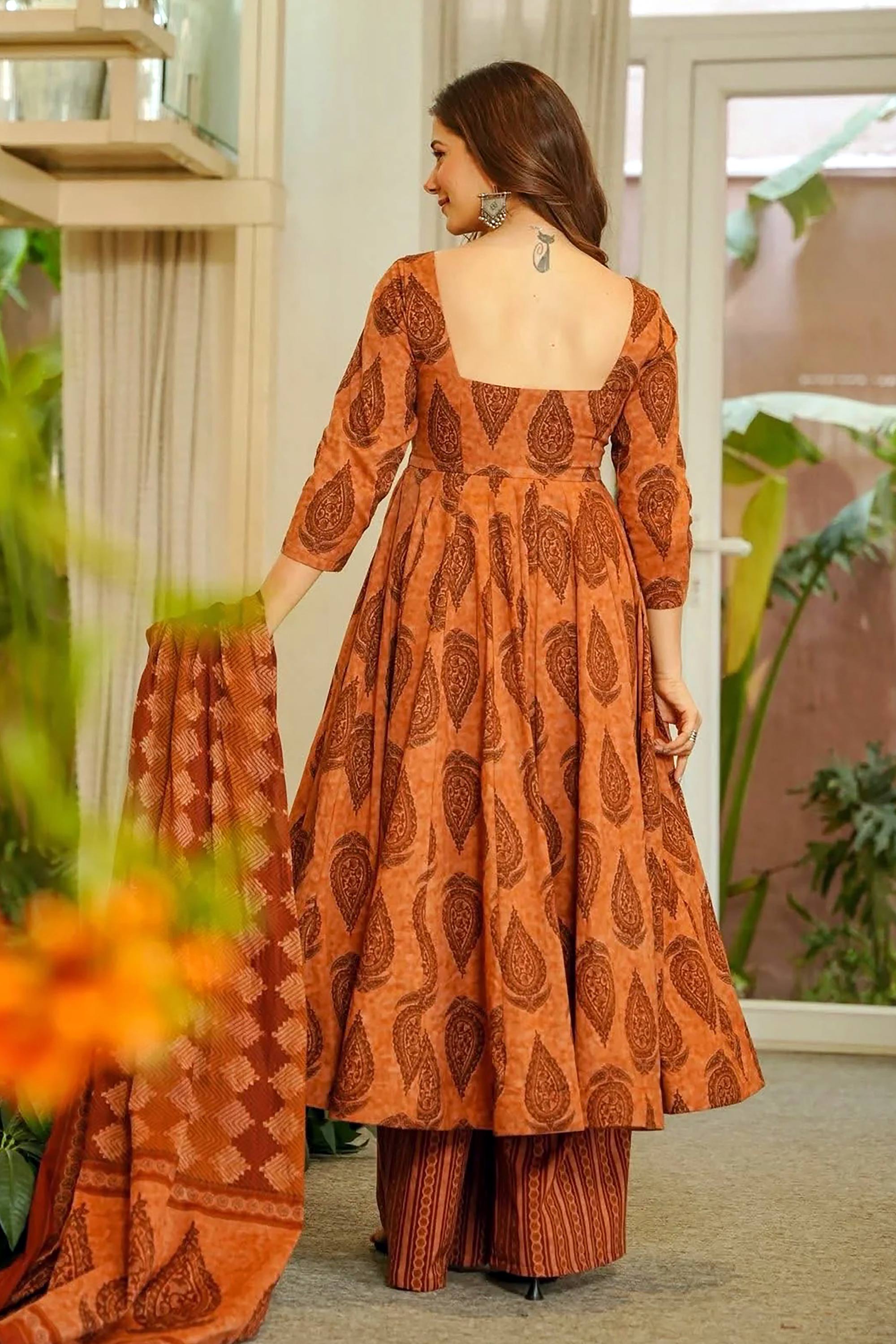 Muslin Digital Print Brown Designer Readymade Palazzo Salwar Kameez