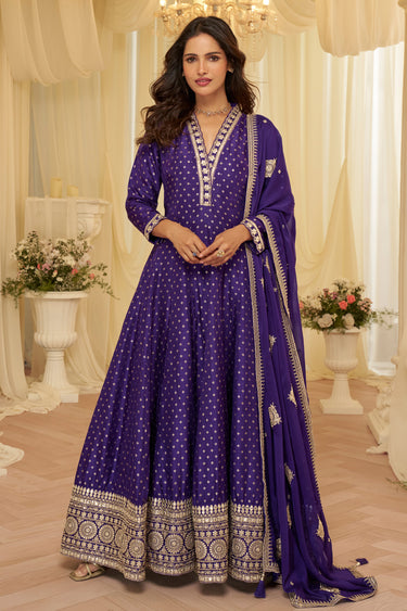 Party Wear Blue Viscose Silk Ready To Wear Anarkali Salwar Suit