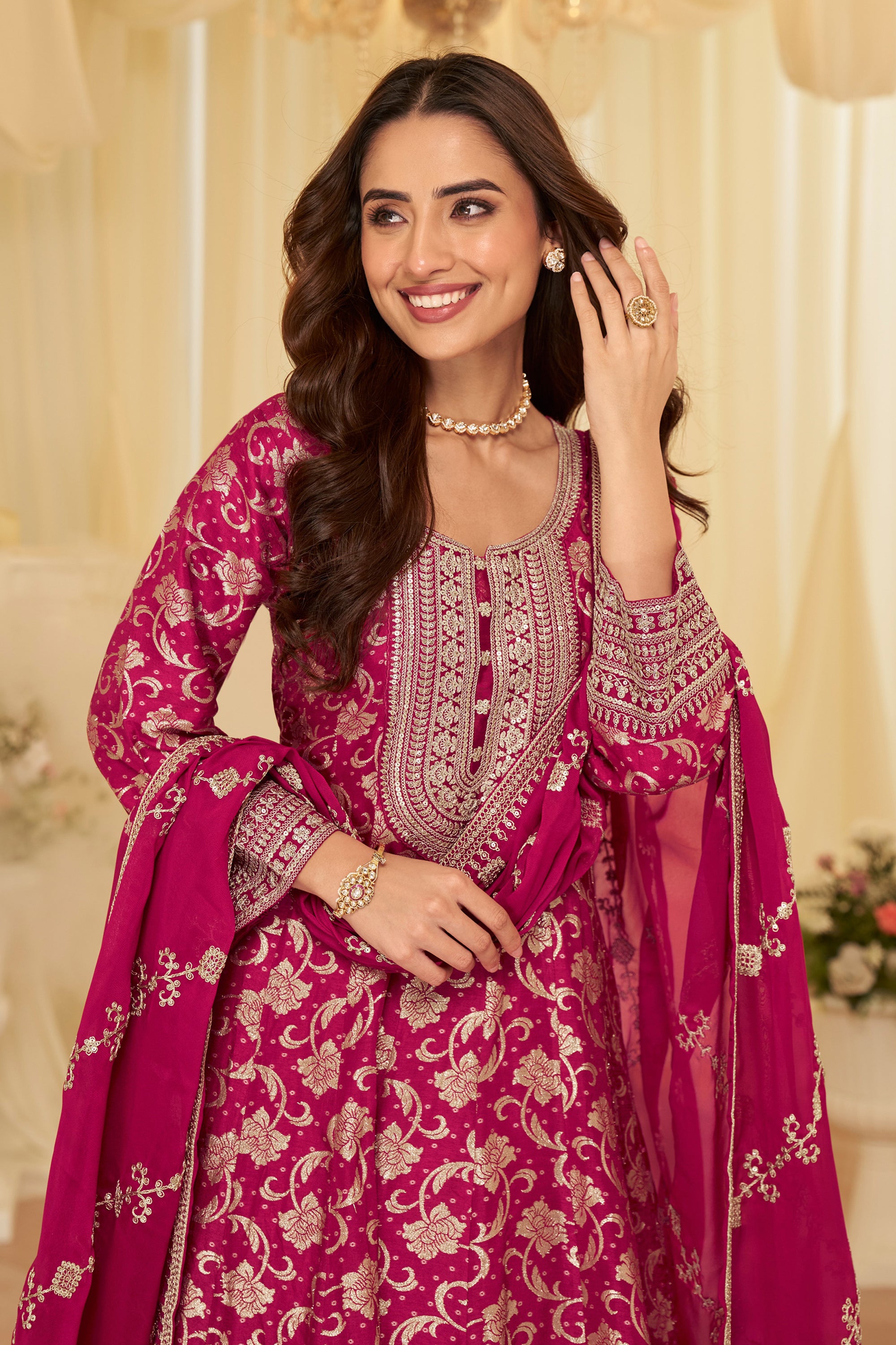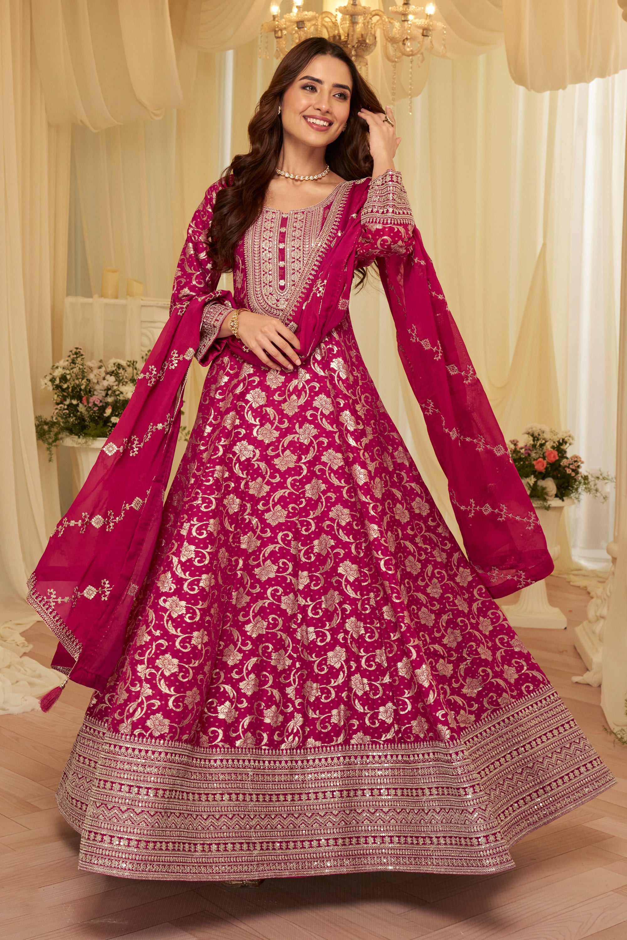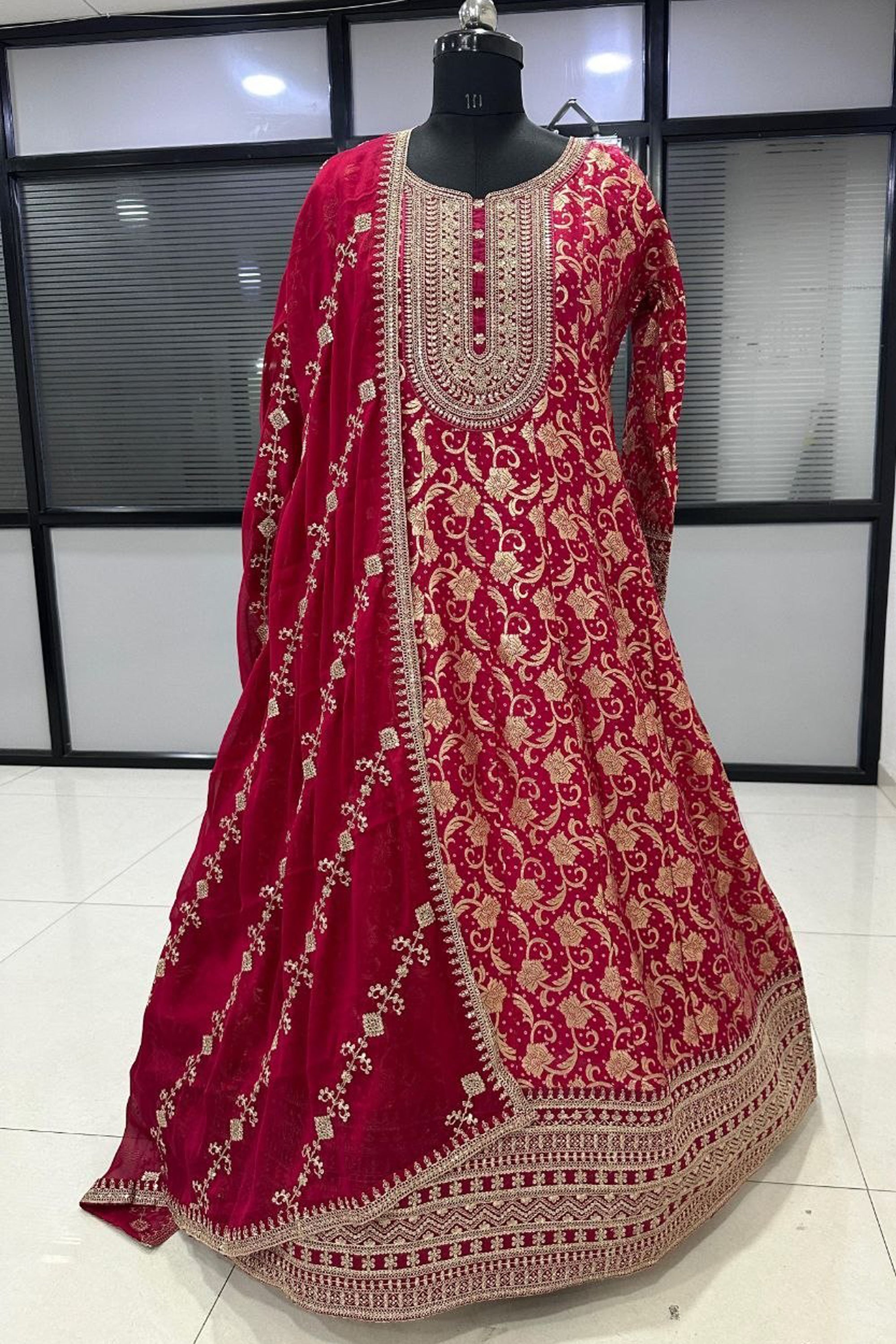 Rani Viscose Silk Function Wear Readymade Anarkali Salwar Suit