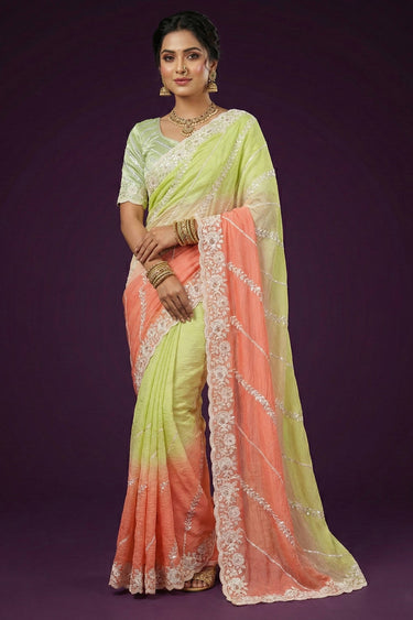 Art Silk Embroidered Sea Green Wedding Wear Saree