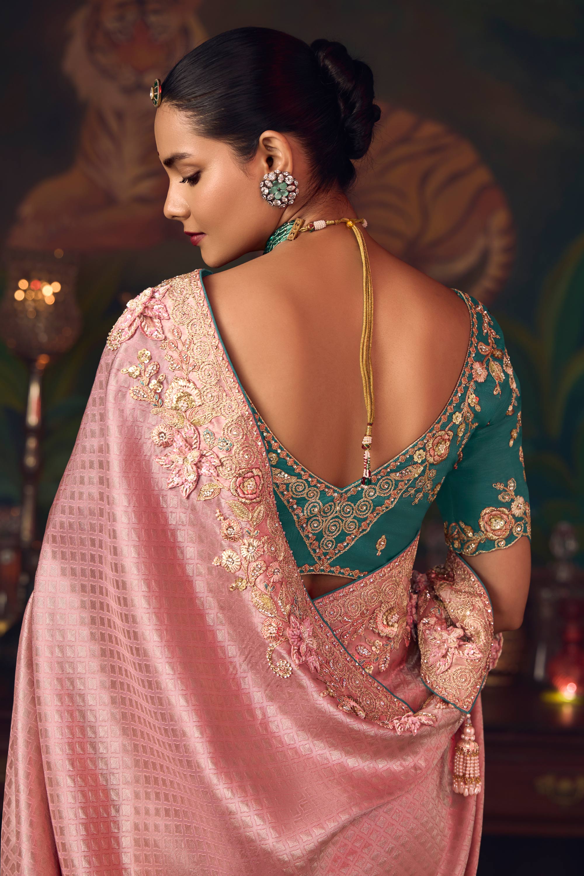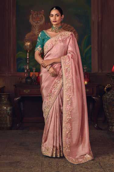 Silk Border Work Pink Sangeet Wear Saree