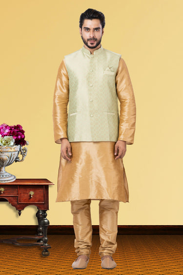 Dhupion Raw Silk Cream Magnificent Readymade Men Kurta Pyjama With Jacket