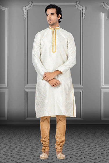 Linen Silk Fabric Artistic Readymade Men Kurta Pyjama For Function Wear