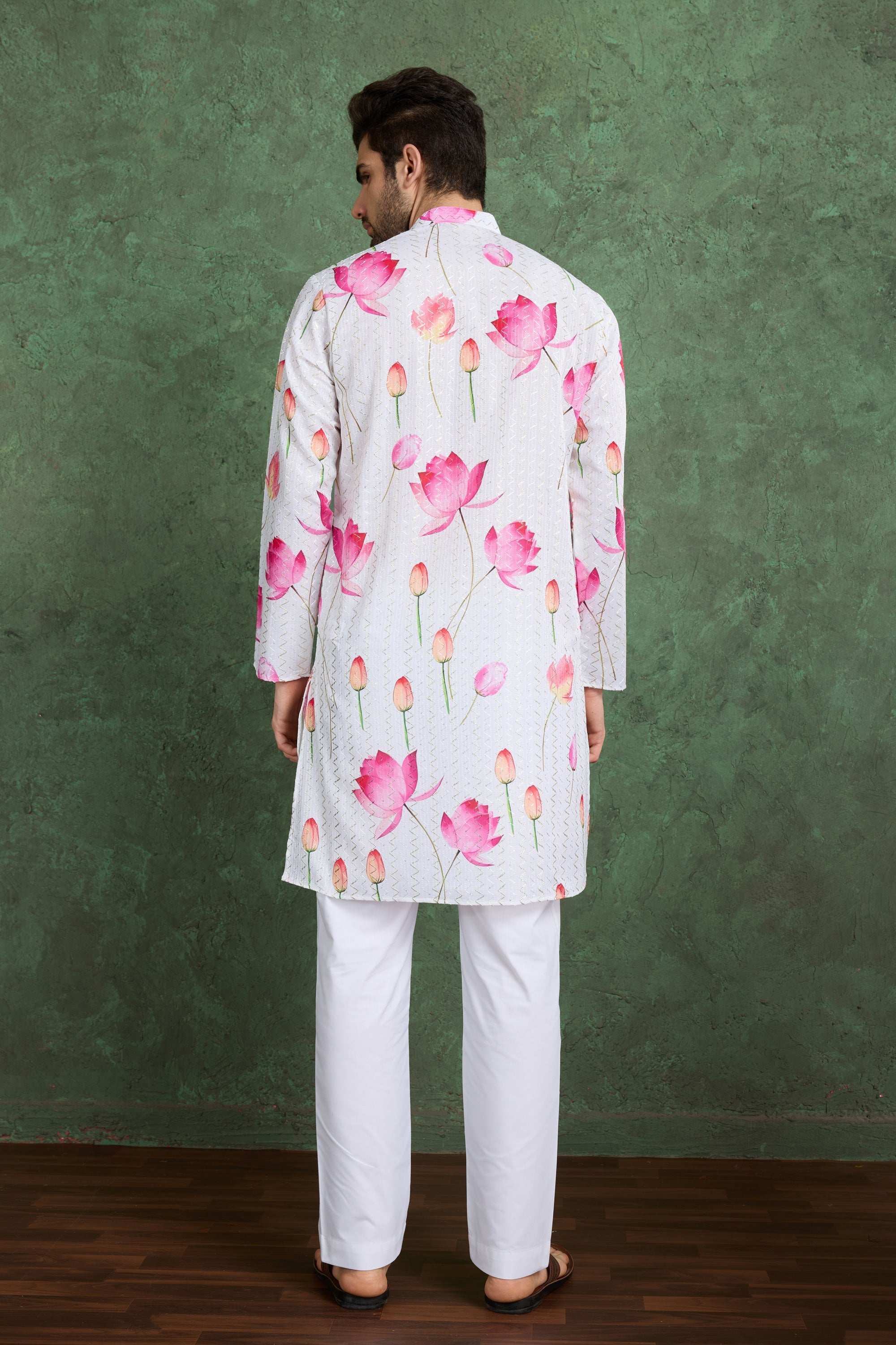 Experience the elegance and tradition of Indian attire with the Sangeet Wear Rayon Readymade Designer Men Kurta. Crafted from premium quality rayon, this kurta ensures both comfort and durability. The deep, rich color is perfect for various occasions, be it a festive celebration, a wedding, or a formal event. With intricate detailing and a stylish fit, this kurta makes a standout addition to any wardrobe. The design caters to contemporary tastes while maintaining a classic charm. Easy to wear and maintain, this kurta is the epitome of convenience blended with style.