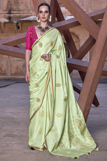 Appealing Weaving Work Satin Silk Fabric Saree In Sea Green Color