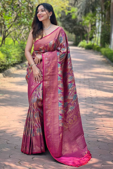 Art Silk Fabric Rani Color Saree With Winsome Weaving Work