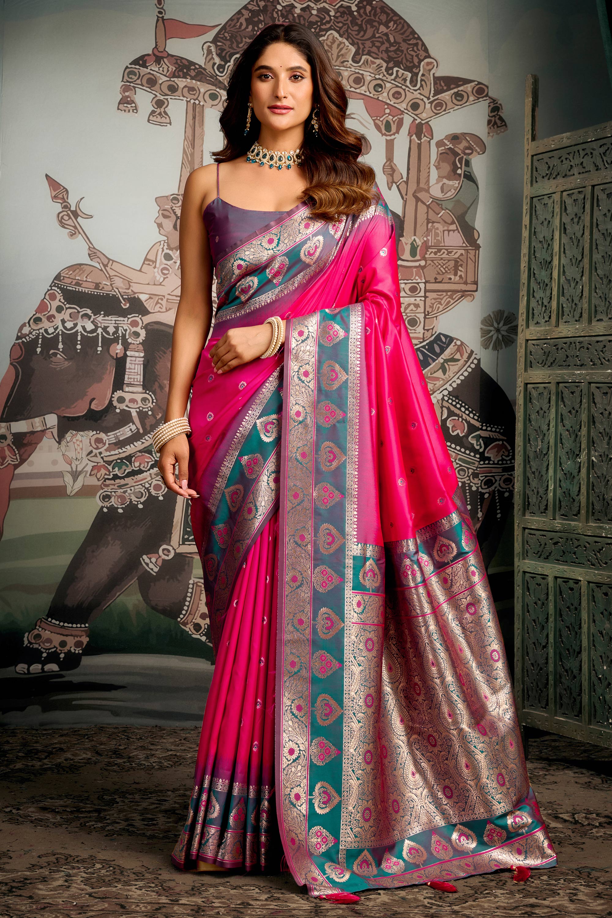 Celebrate tradition and style with this stunning Festive Wear Art Silk Weaving Work Saree. The vibrant colors and detailed weaving make this saree ideal for weddings, cultural events, and festive gatherings. Designed for a flattering drape, the fabric offers a graceful flow while remaining lightweight and comfortable. This saree effortlessly balances traditional aesthetics with a contemporary edge, allowing you to stand out in any setting. Complete the look with matching accessories to bring out the intricate designs and elevate your overall style. A versatile piece that combines elegance and charm in equal measure.