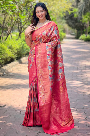 Awesome Weaving Work On Art Silk Fabric Red Color Saree