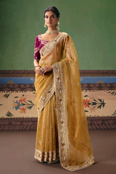 Brown Function Wear Embroidered Border Work Designer Saree