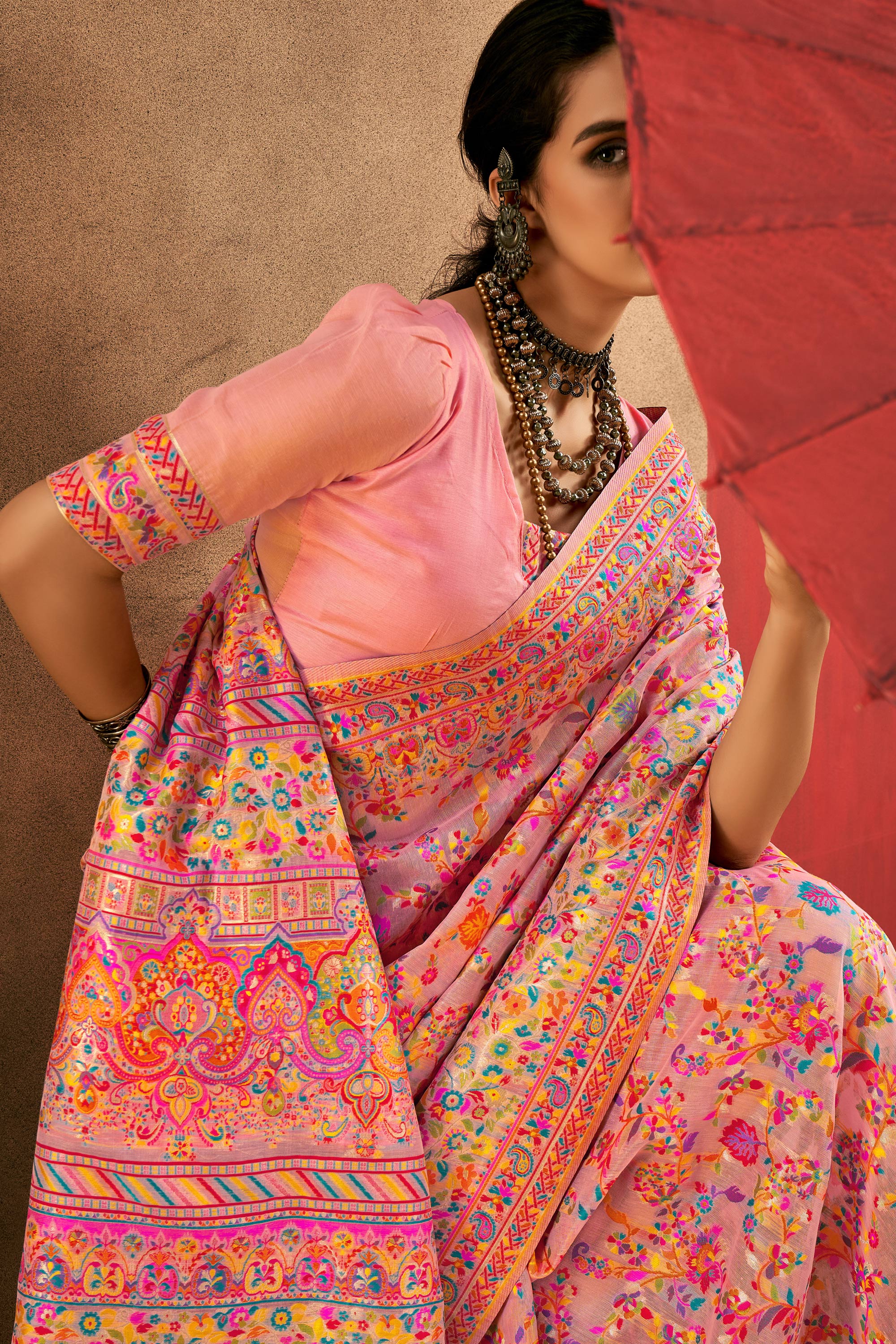 Cotton Fabric Printed Pink Saree For Festive Wear