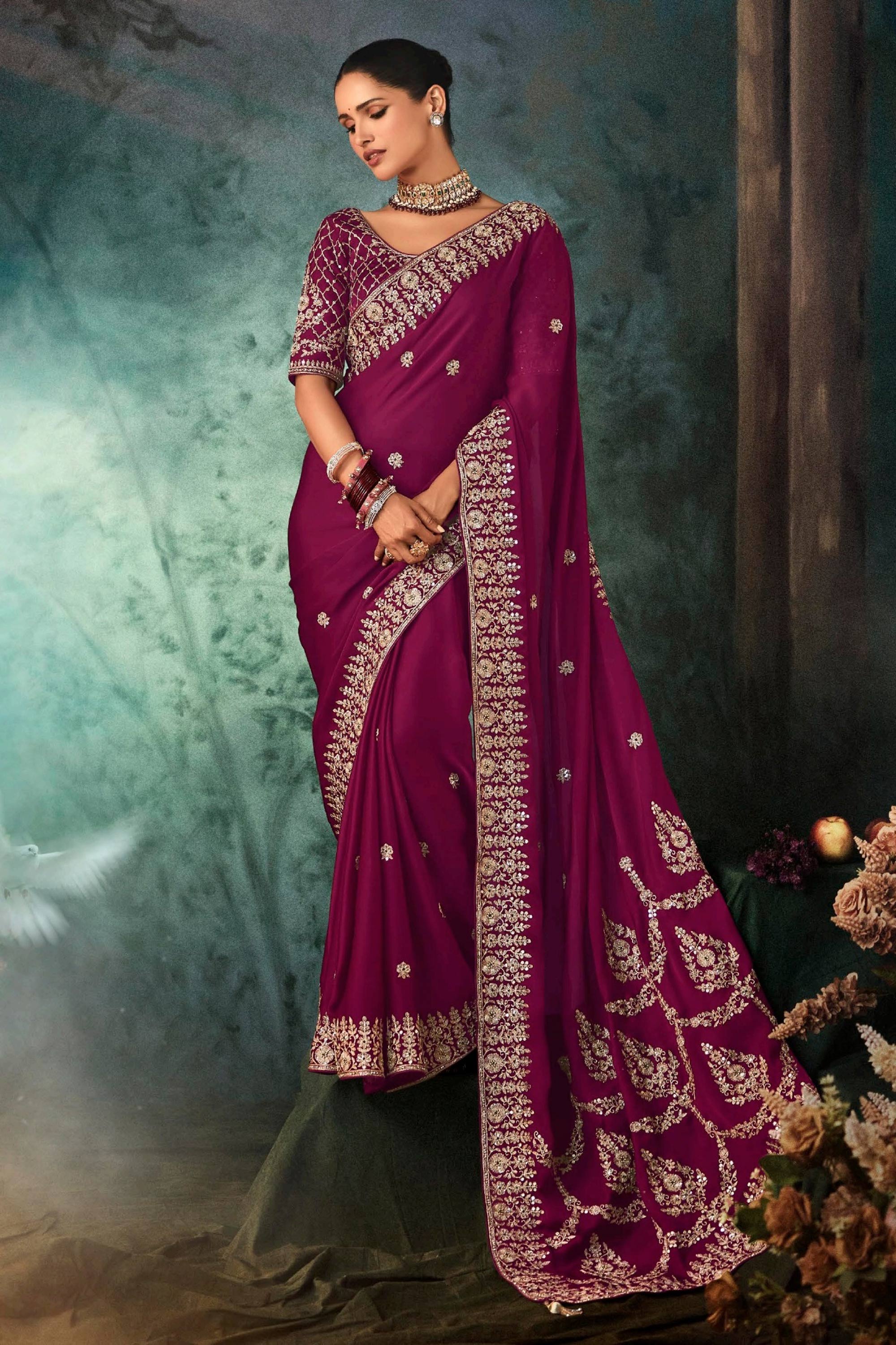 Fancy Fabric Magenta Wedding Wear Saree