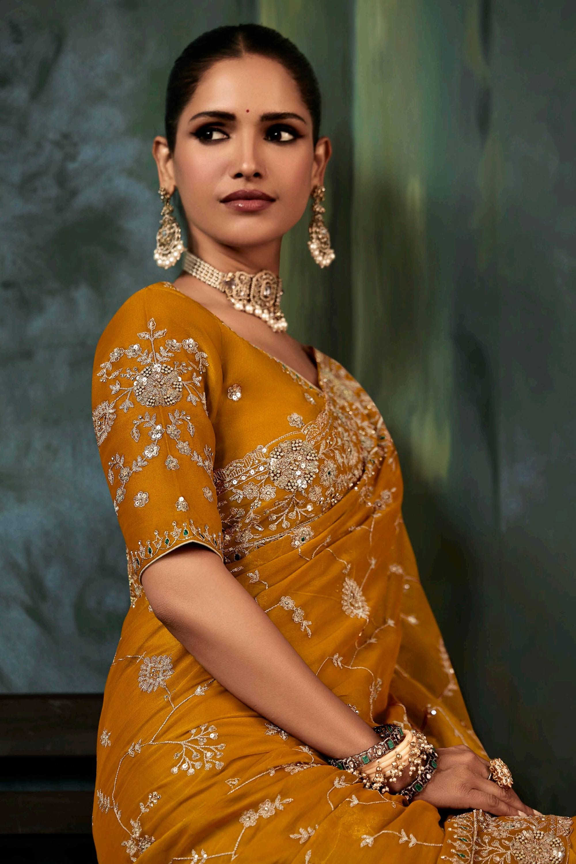 Embrace the art of traditional fashion with this exquisitely designed Heavy Embroidered Work Wedding Bridal Designer Saree. Its delicate yet elaborate embroidery reflects refined craftsmanship, making it the perfect attire for weddings, festive gatherings, and celebratory events. This saree's luxurious fabric is adorned with rich patterns, offering both comfort and unmatched elegance. Paired with an unstitched heavy work blouse, you have the freedom to create a tailored outfit that reflects your unique style. Add grace and poise to your special day with this saree that combines modern glamour with cultural heritage.