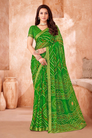 Bring grace to your daily wardrobe with this stunning Bandhej Print Chiffon Saree, complete with a matching blouse piece. Crafted from lightweight chiffon, this saree ensures a comfortable fit for all-day wear while radiating elegance. The Bandhej print lends a traditional touch, blending cultural charm with contemporary appeal. Its versatile design makes it perfect for casual outings, workwear, or relaxed gatherings. Easy to drape and maintain, this saree is a great addition to any collection.