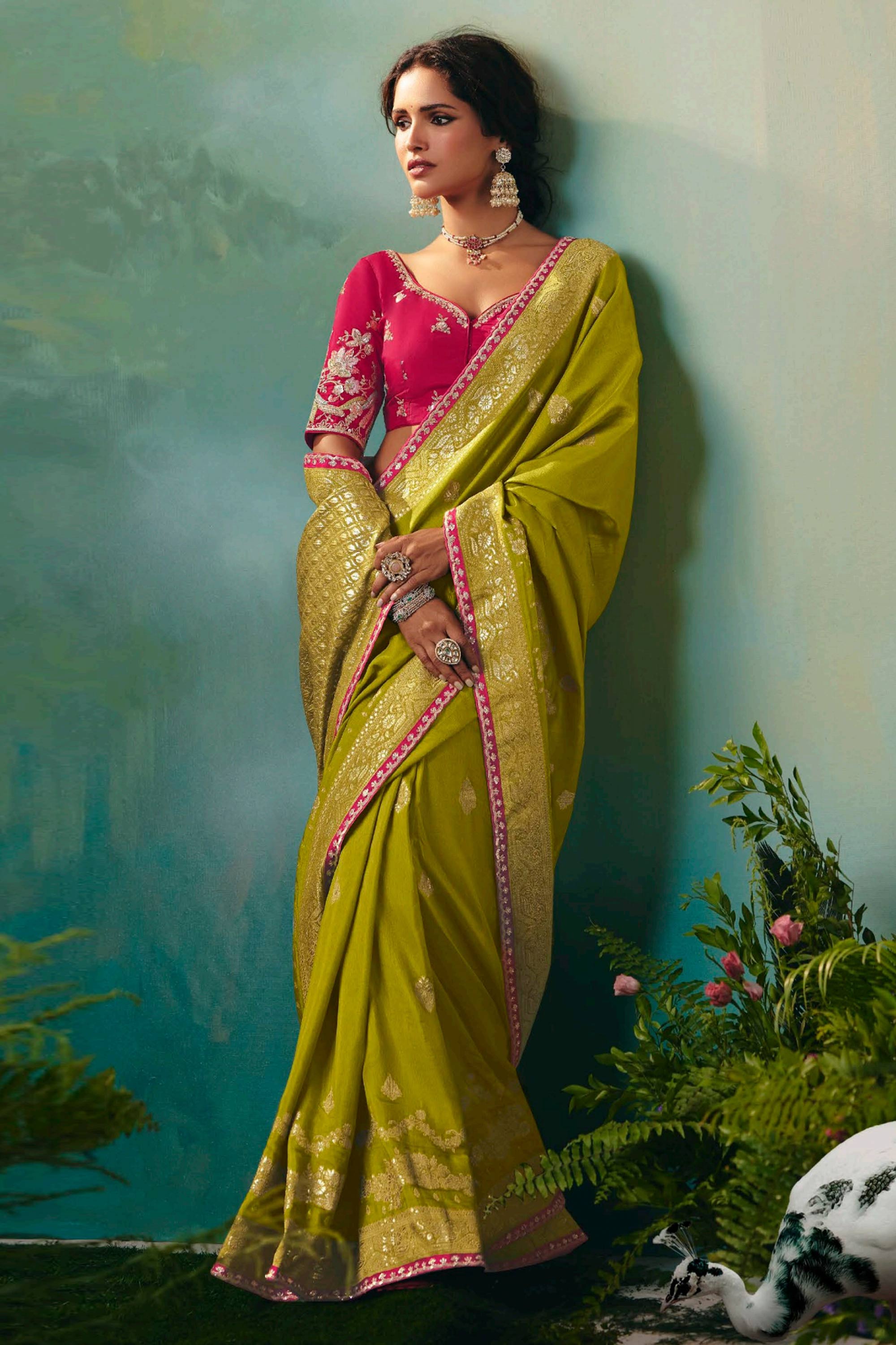 Green Sangeet Wear Viscose Silk Zari Border Work Saree