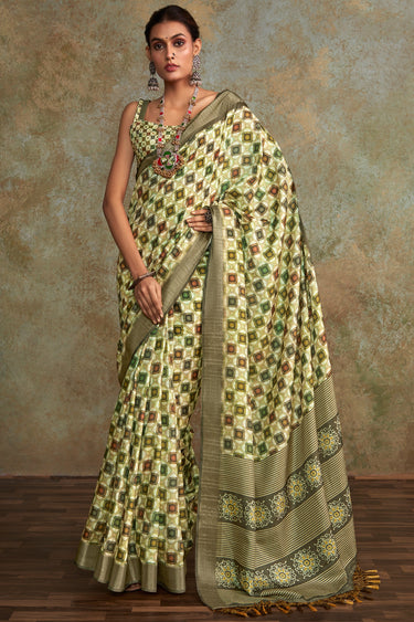 Step into the world of timeless elegance with our Traditional Handloom Silk Saree, a masterpiece designed to make you shine at every festive occasion. Crafted from the finest handloom silk fabric, this saree showcases intricate printed work that seamlessly blends traditional artistry with contemporary charm.