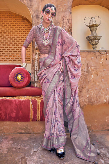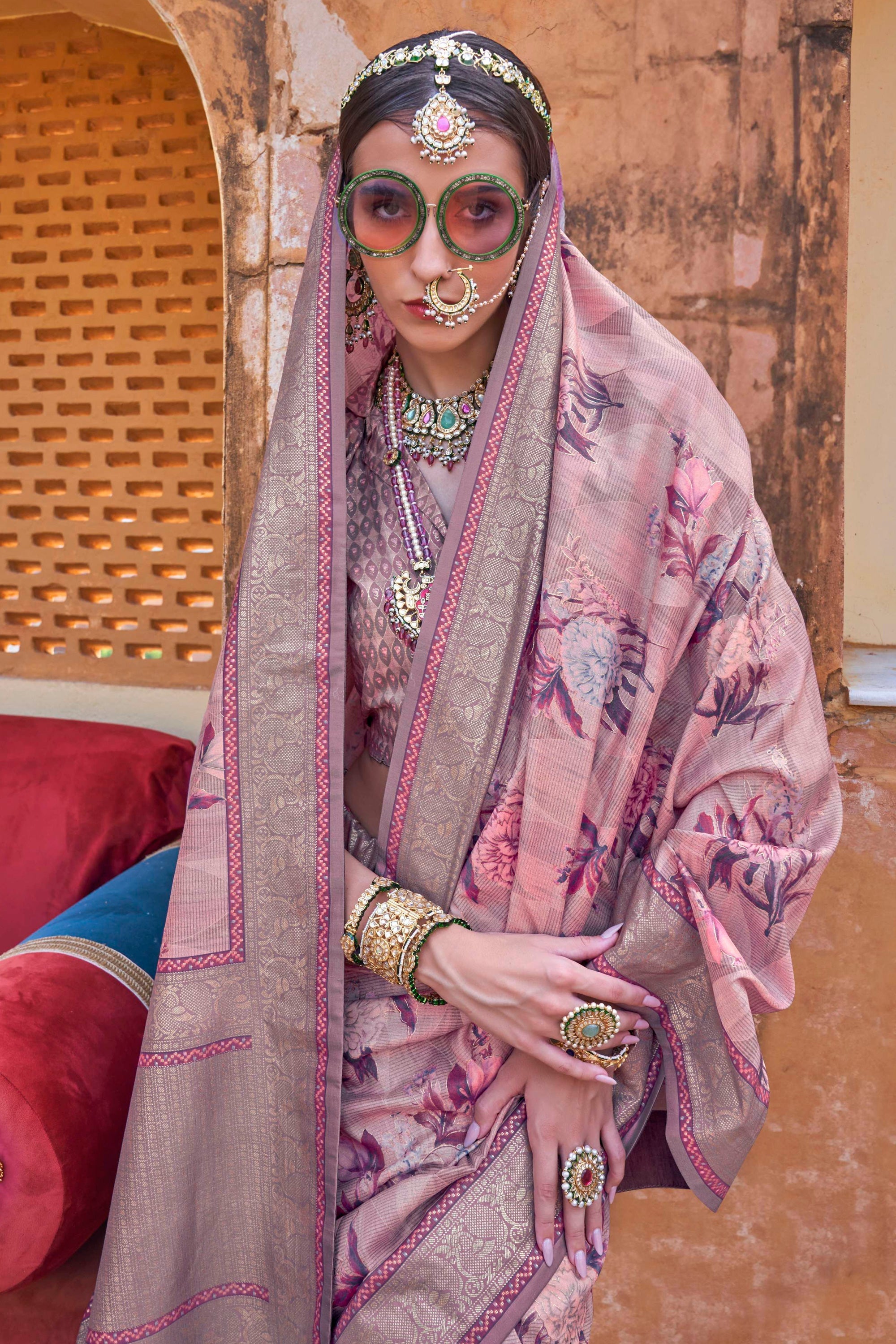 Pink Floral Printed Art Silk Festive Wear Saree With Blouse