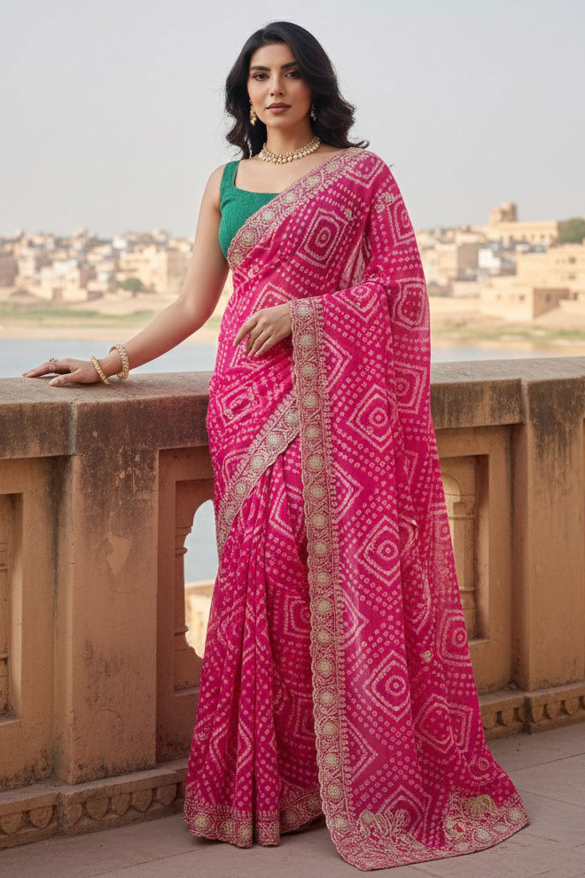 Gorgeous Bandhej Georgette Saree – Elevate your traditional style with this elegant saree that blends timeless artistry with a modern touch. Crafted with care from premium-quality georgette fabric, this saree is light, flowy, and comfortable for any occasion. The intricate Bandhej design, with its vibrant patterns and bright colors, exudes charm and cultural richness. Perfect for weddings, parties, or festive gatherings, it will make you stand out effortlessly. Easy to drape and pair with your favorite accessories, it brings a balance of beauty and simplicity to your wardrobe. Celebrate every moment with grace and confidence.