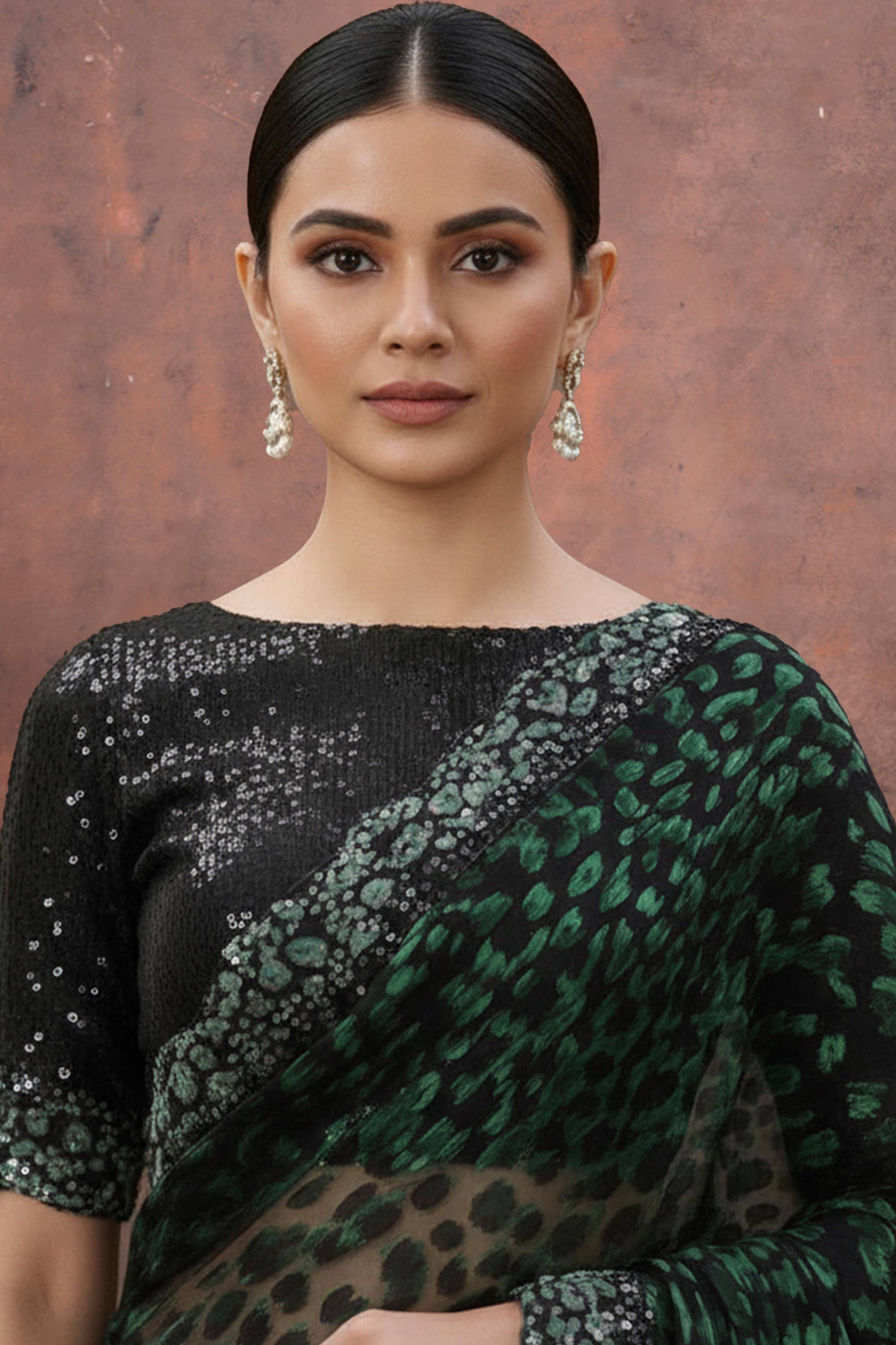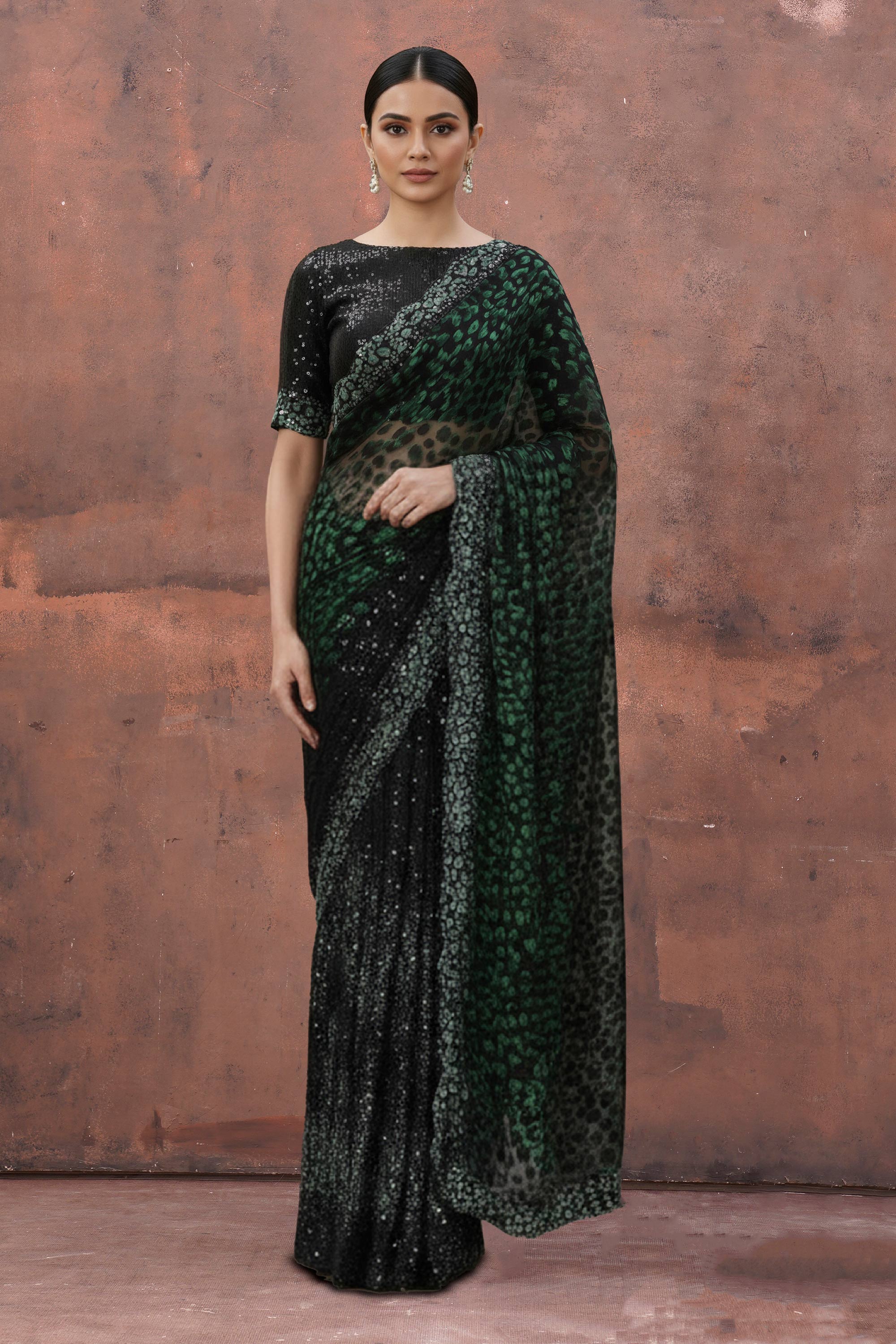 Sequins Work Velvet And Net Fabric Black Saree For Party Wear