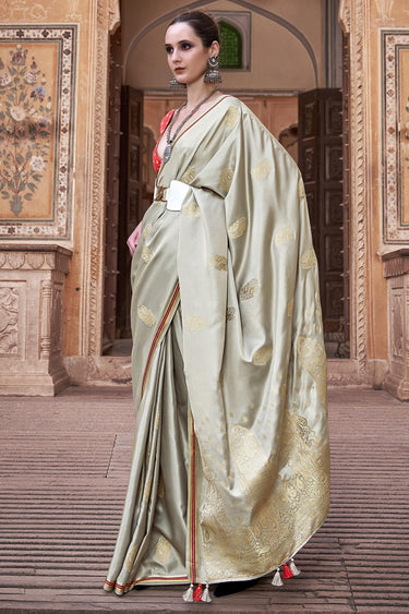Weaving Work Captivating Satin Silk Fabric Saree In Dark Beige Color