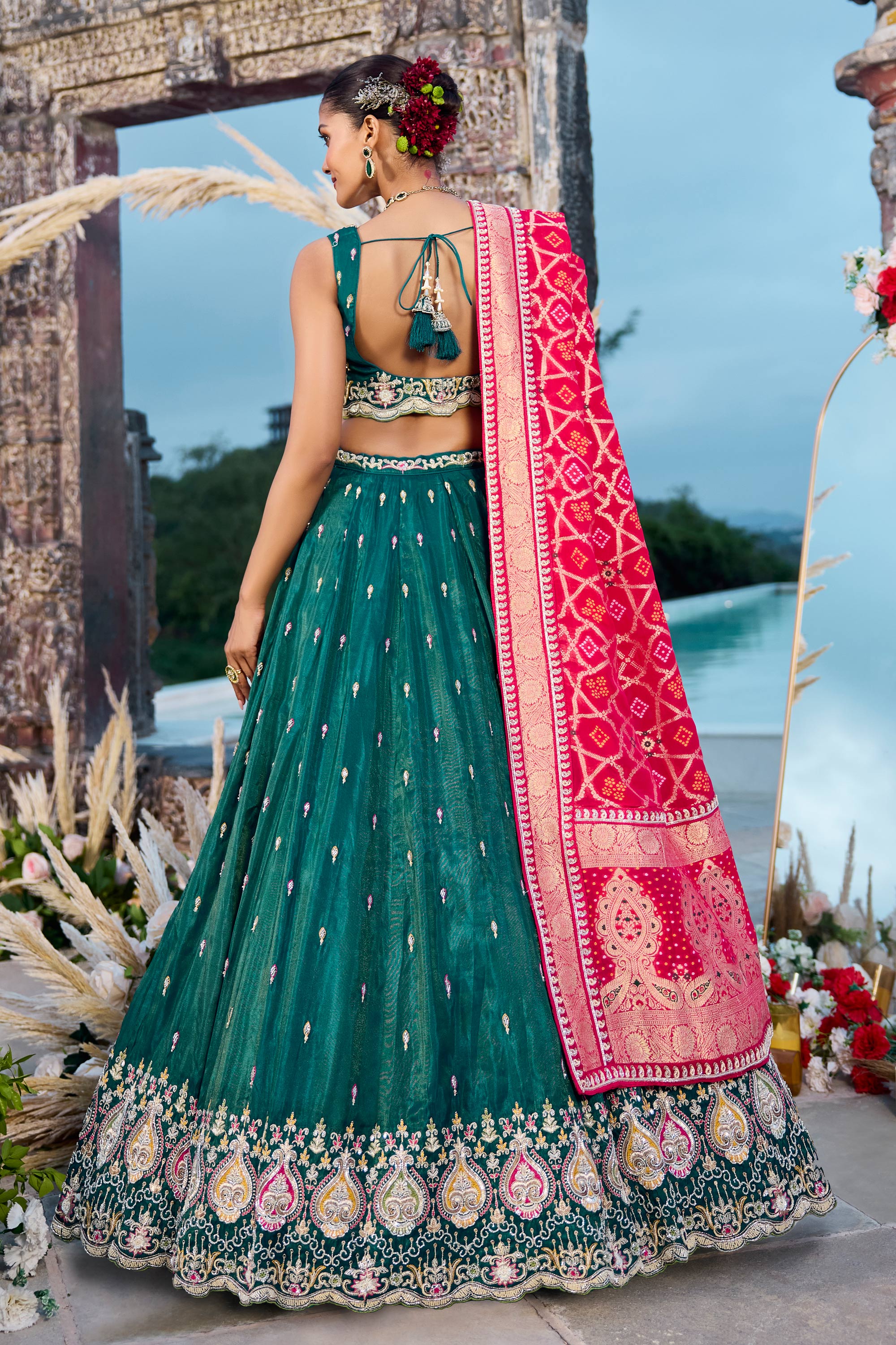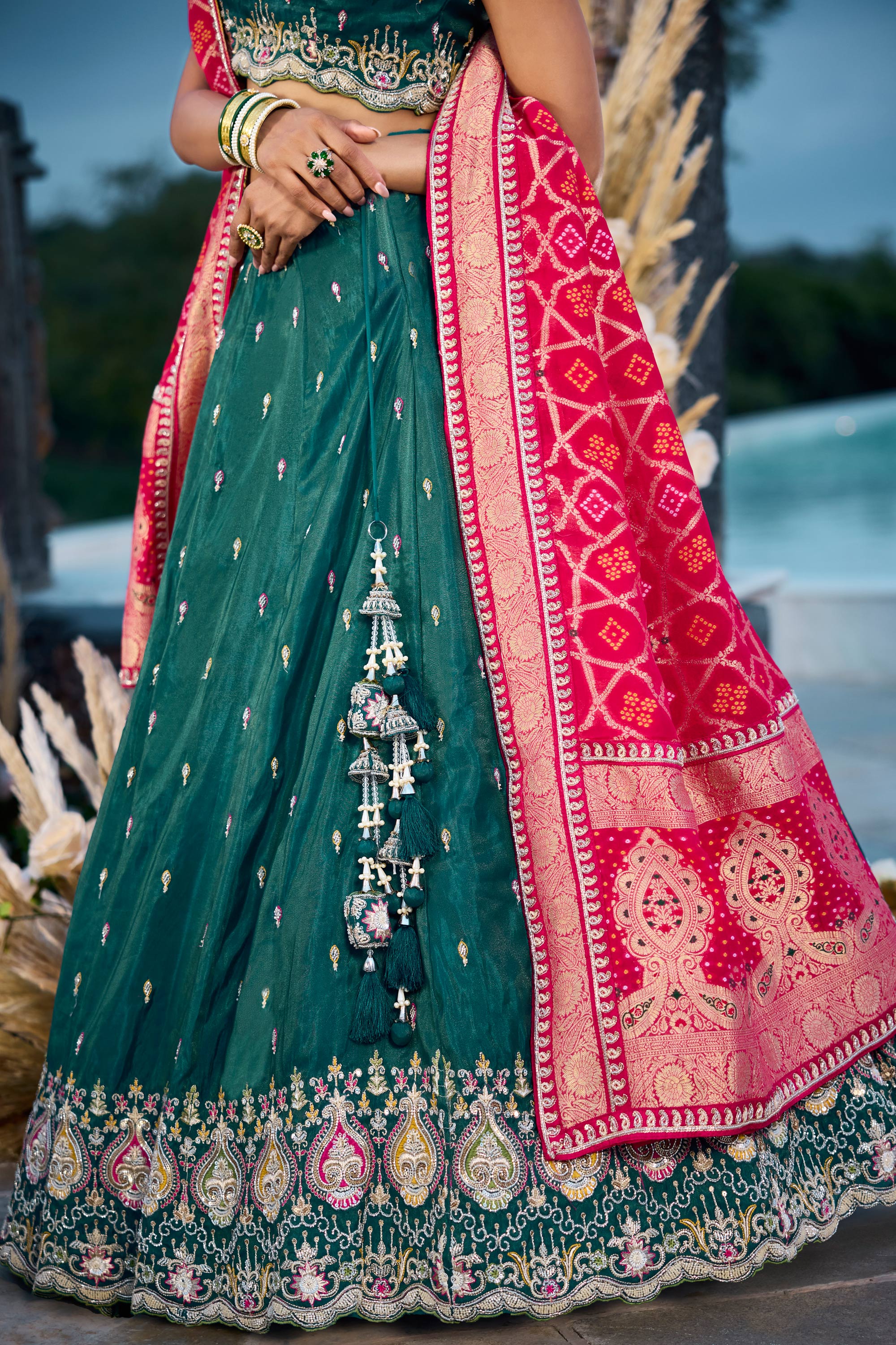 Make a bold impression at wedding festivities with this Reach Color Semi Stitched Lehenga adorned with intricate sequin embroidery. The set features a flattering blouse with three quarter sleeves, combining traditional aesthetics with contemporary flair. Its adjustable drawstring makes it versatile and comfortable to wear, allowing you to personalize your fit effortlessly. Ideal for occasions like ceremonies and parties, this outfit highlights refined craftsmanship and graceful style. Perfect for creating memorable moments, it offers a versatile yet sophisticated option for your wardrobe.