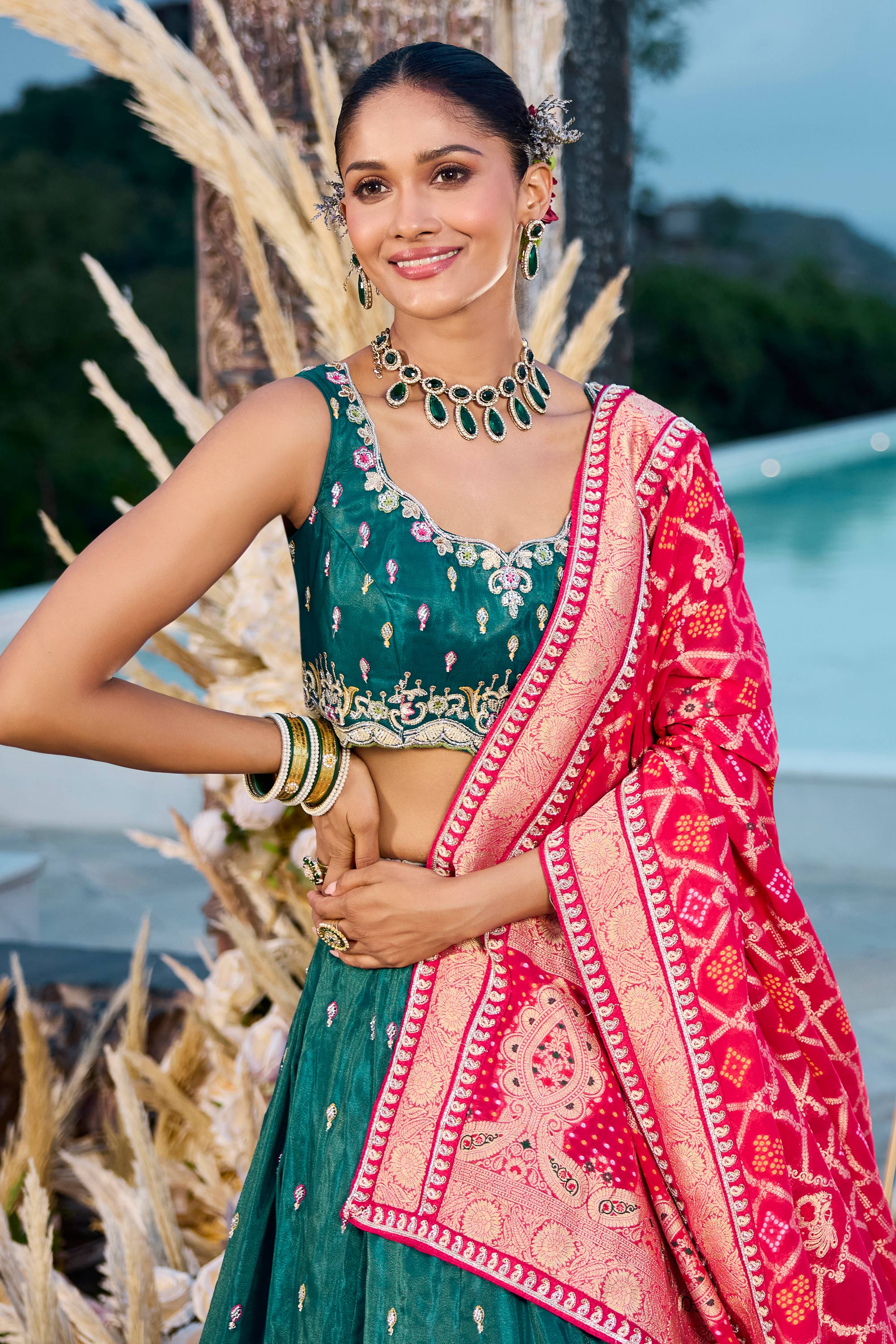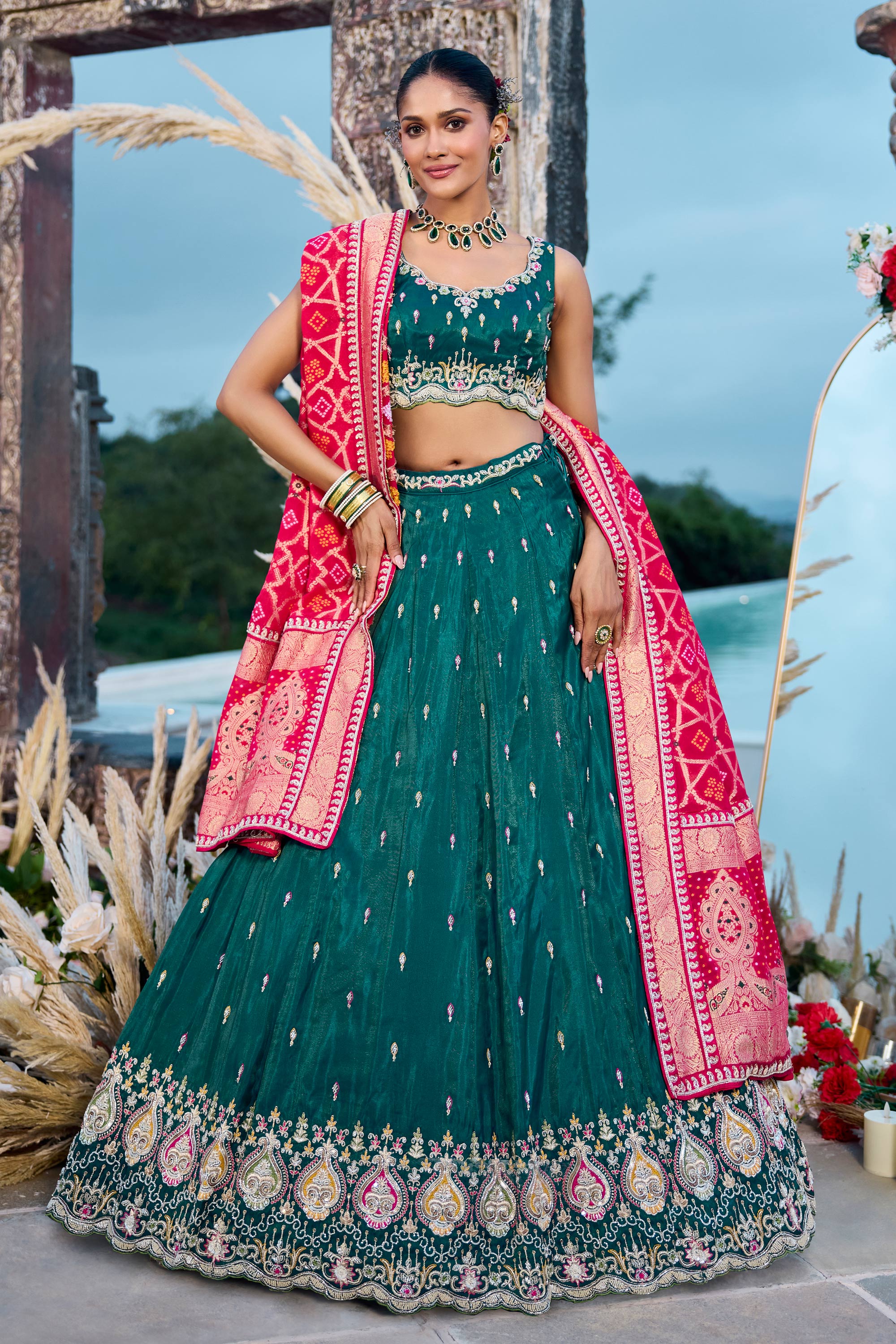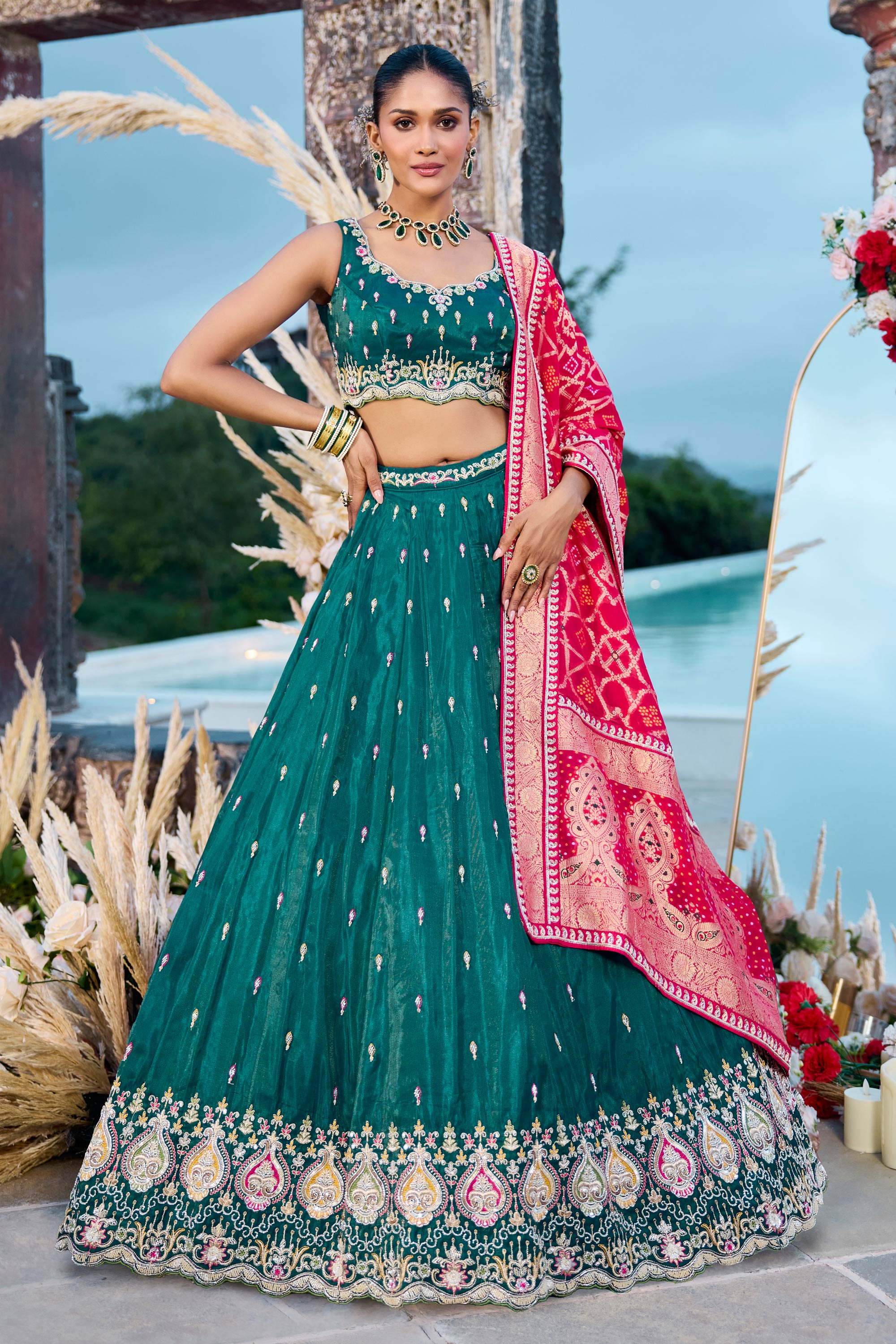 Silk Fabric Teal Wedding Wear Lehenga Choli With Dupatta