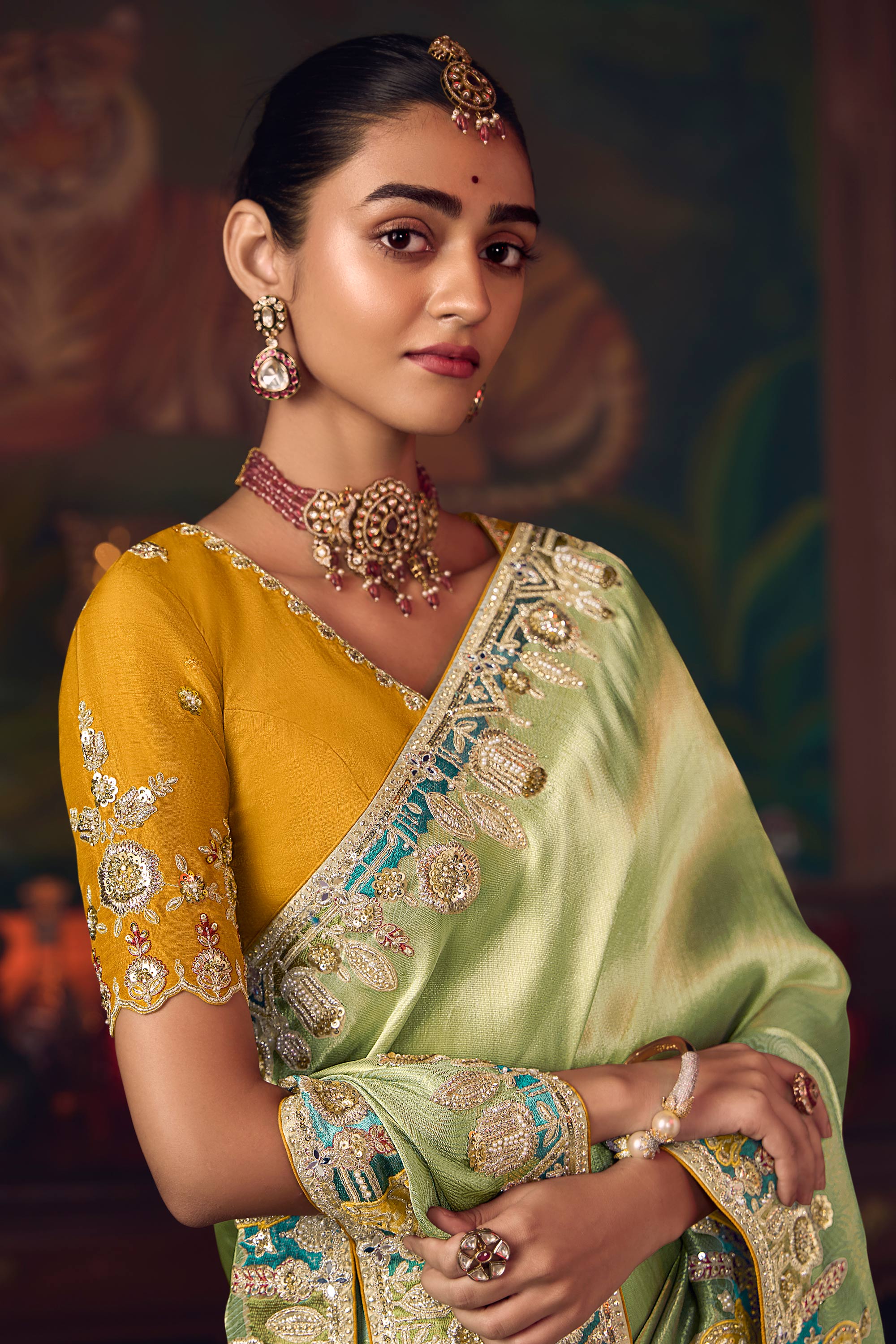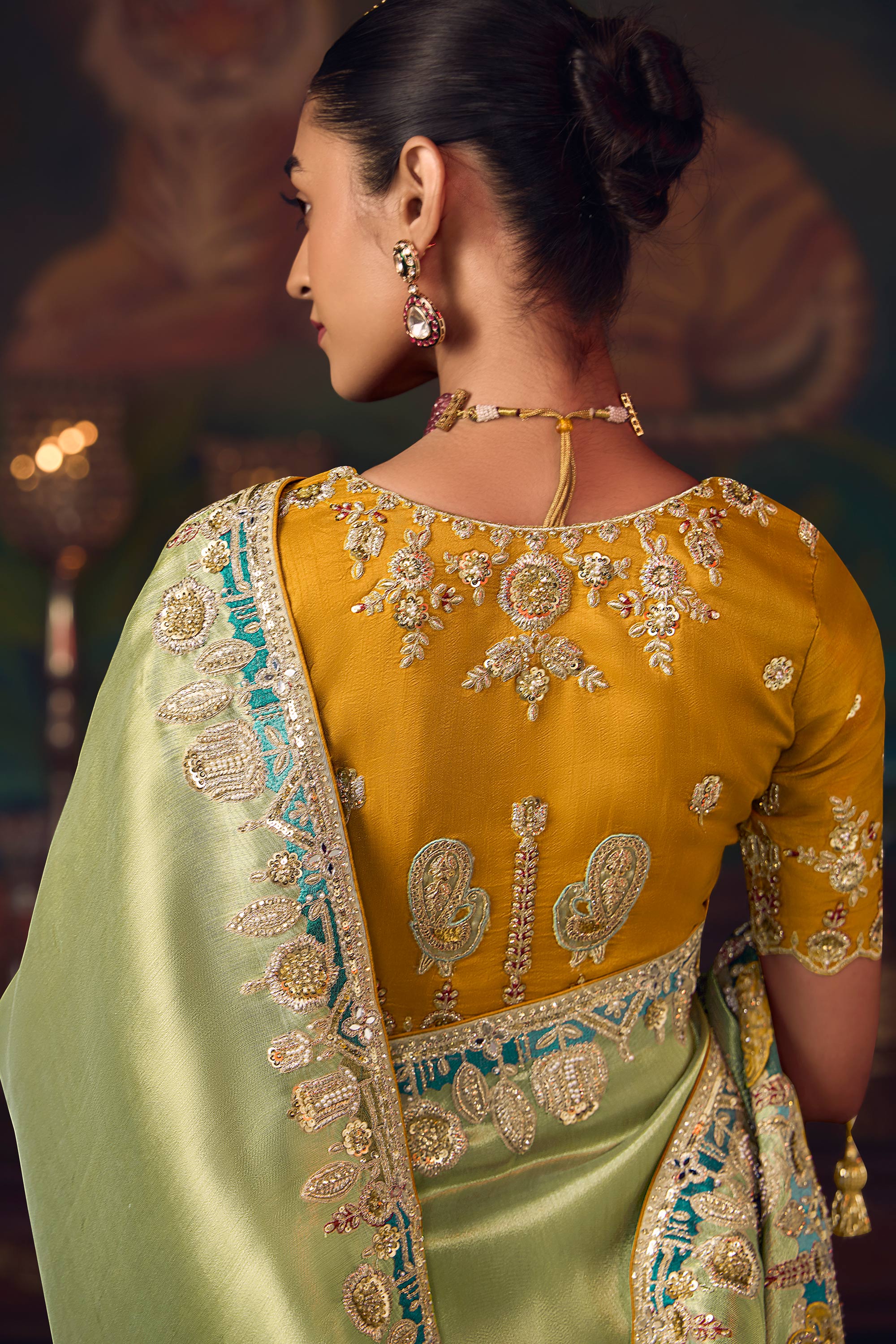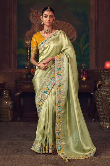 Sea Green Silk Border Work Sangeet Wear Saree