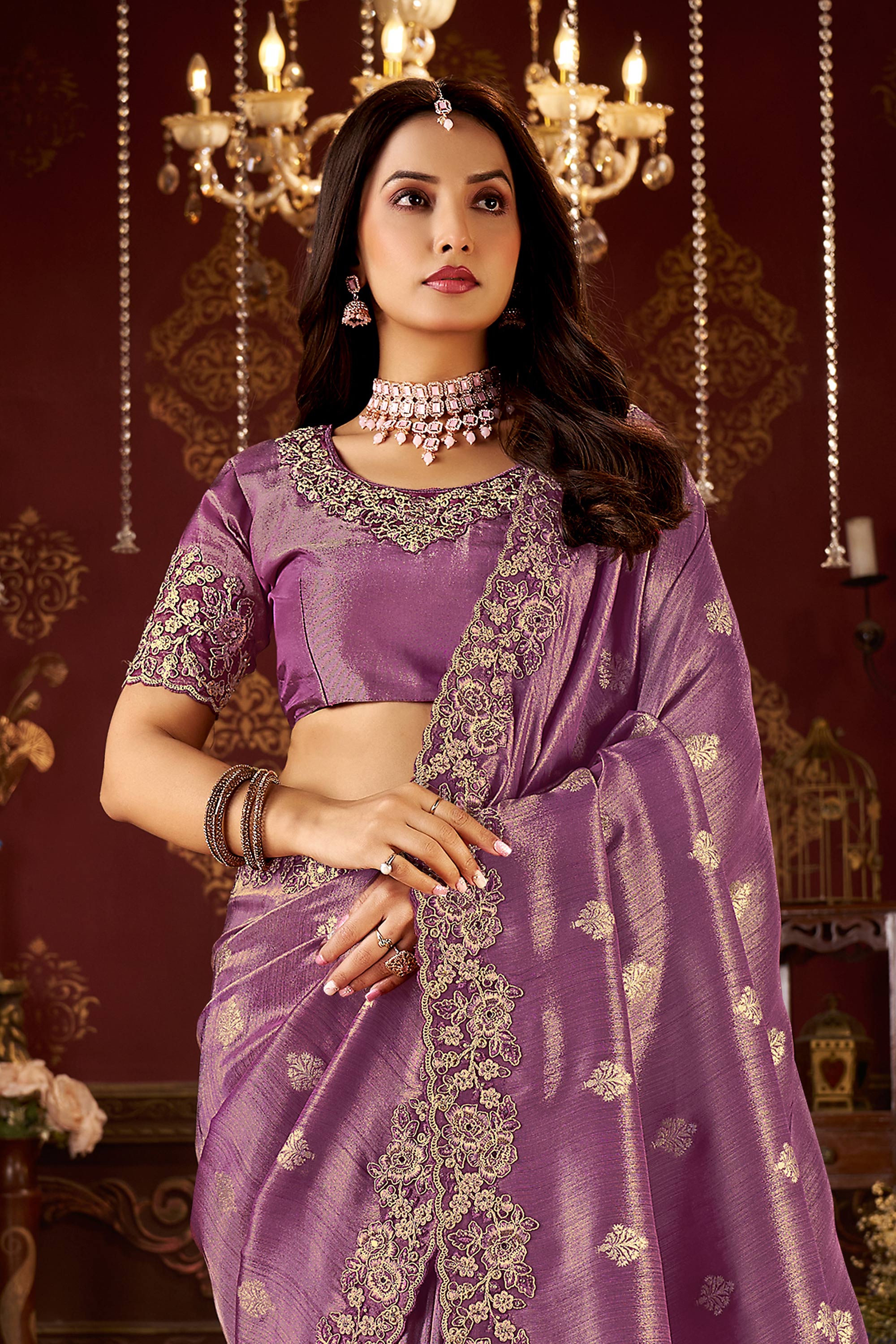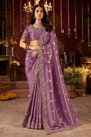 Art Silk Fabric Lavender Sangeet Wear Saree