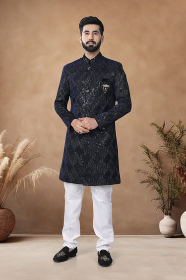 Velvet Blue Festive Wear Readymade Men Stylish Indo Western