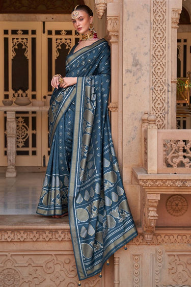 Dark Grey Color Art Silk Fabric Banarasi Style Saree For Function