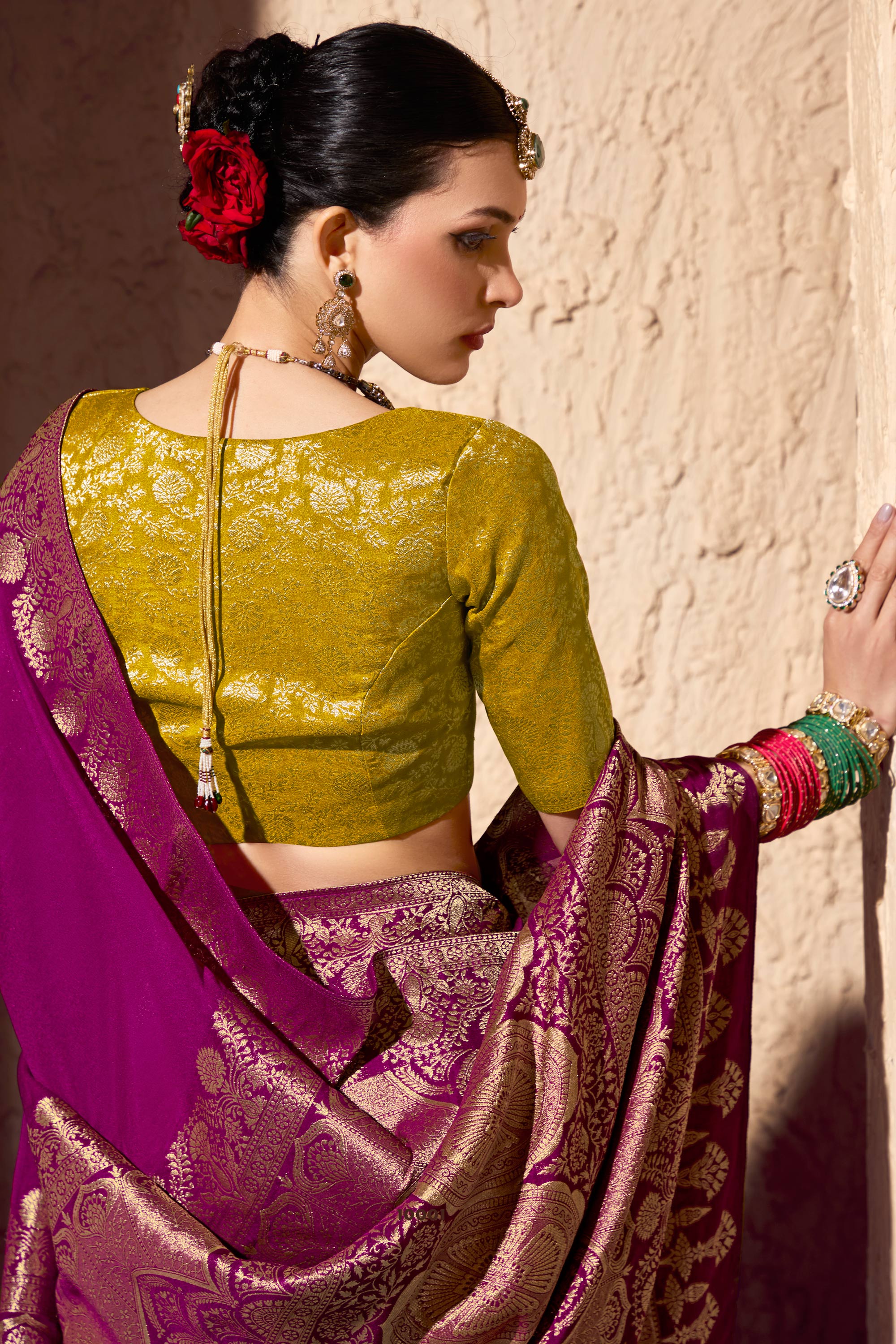 Function Wear Magenta Weaving Work Saree In Georgette Fabric