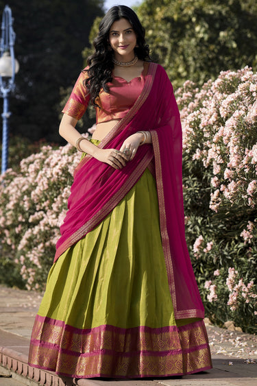 Sea Green Color Art Silk Function Wear Kanchipuram With Zari Weaving Beautiful Lehenga Choli
