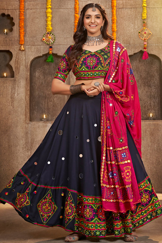 $99.38 USD$198.75 USD Original Price Save 50%/ Navy Blue Wedding Tissue Silk Embroidered Lehenga Choli-