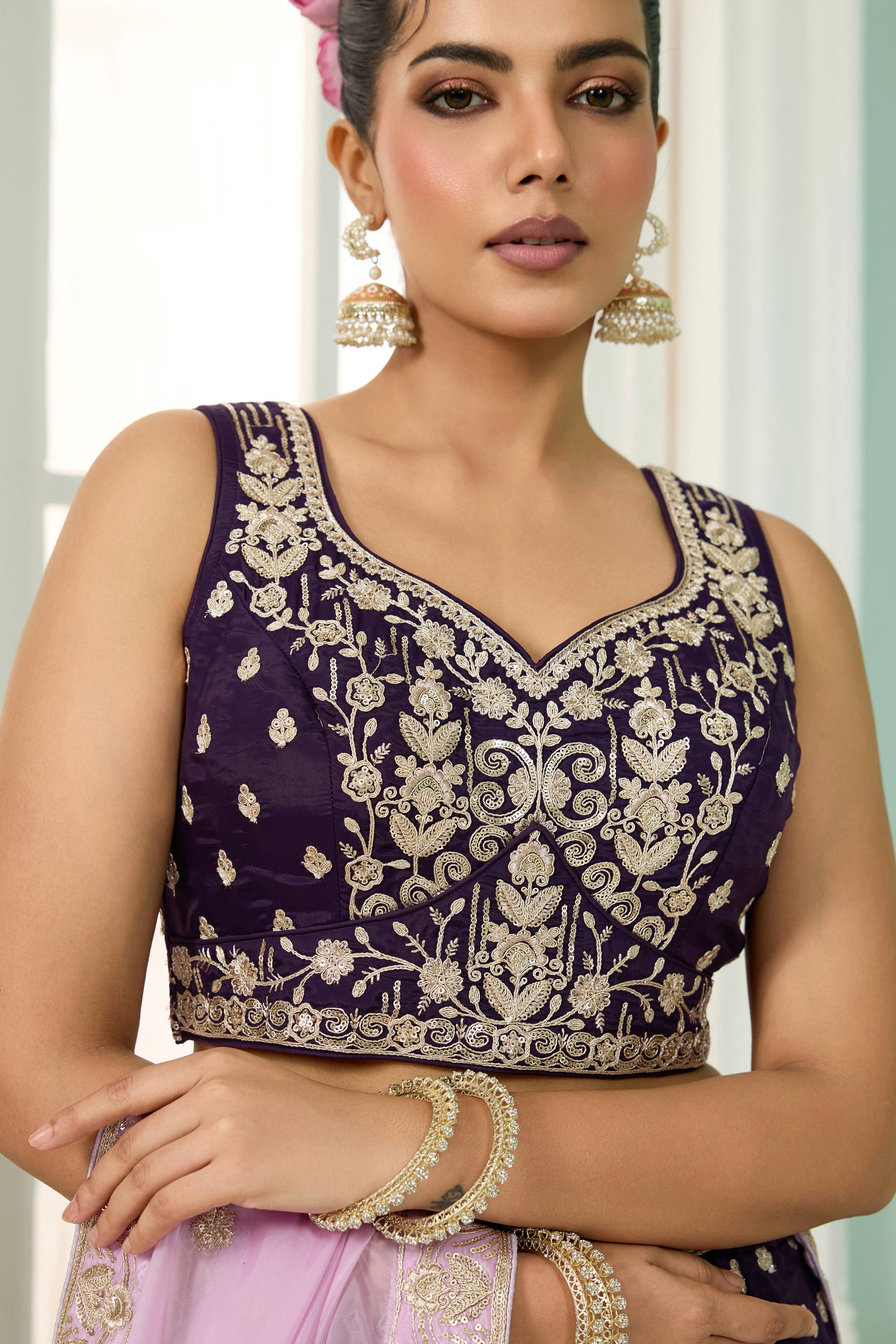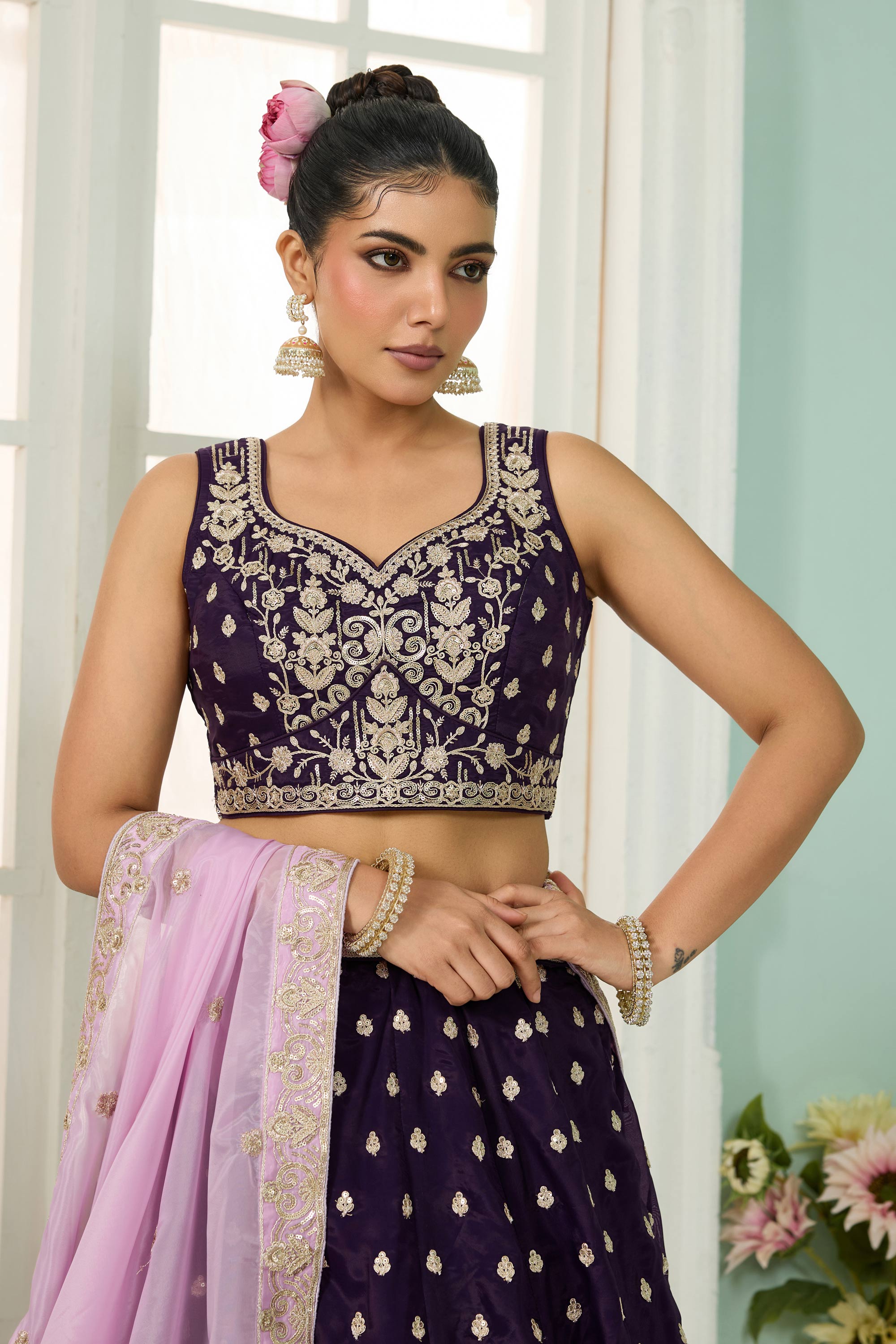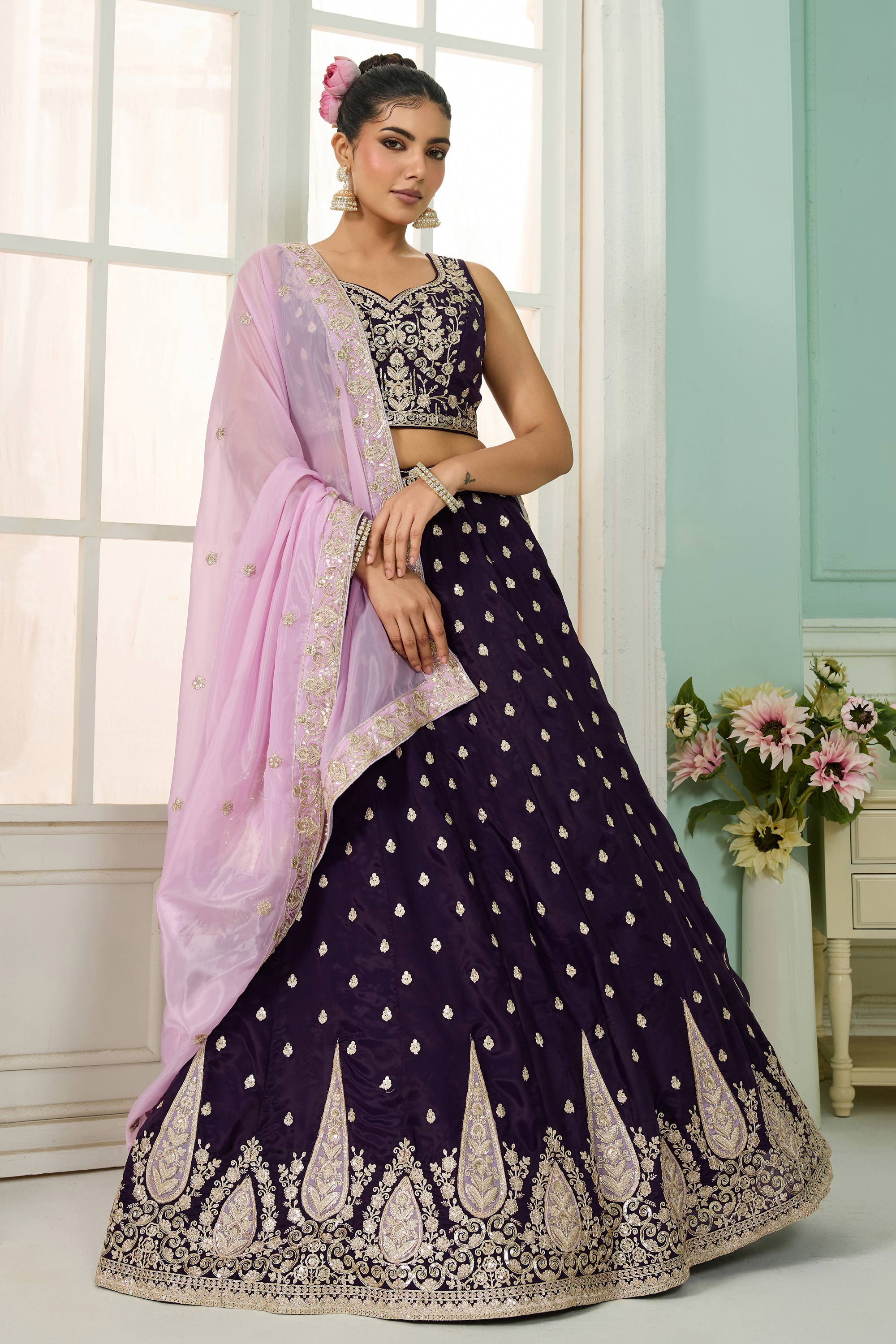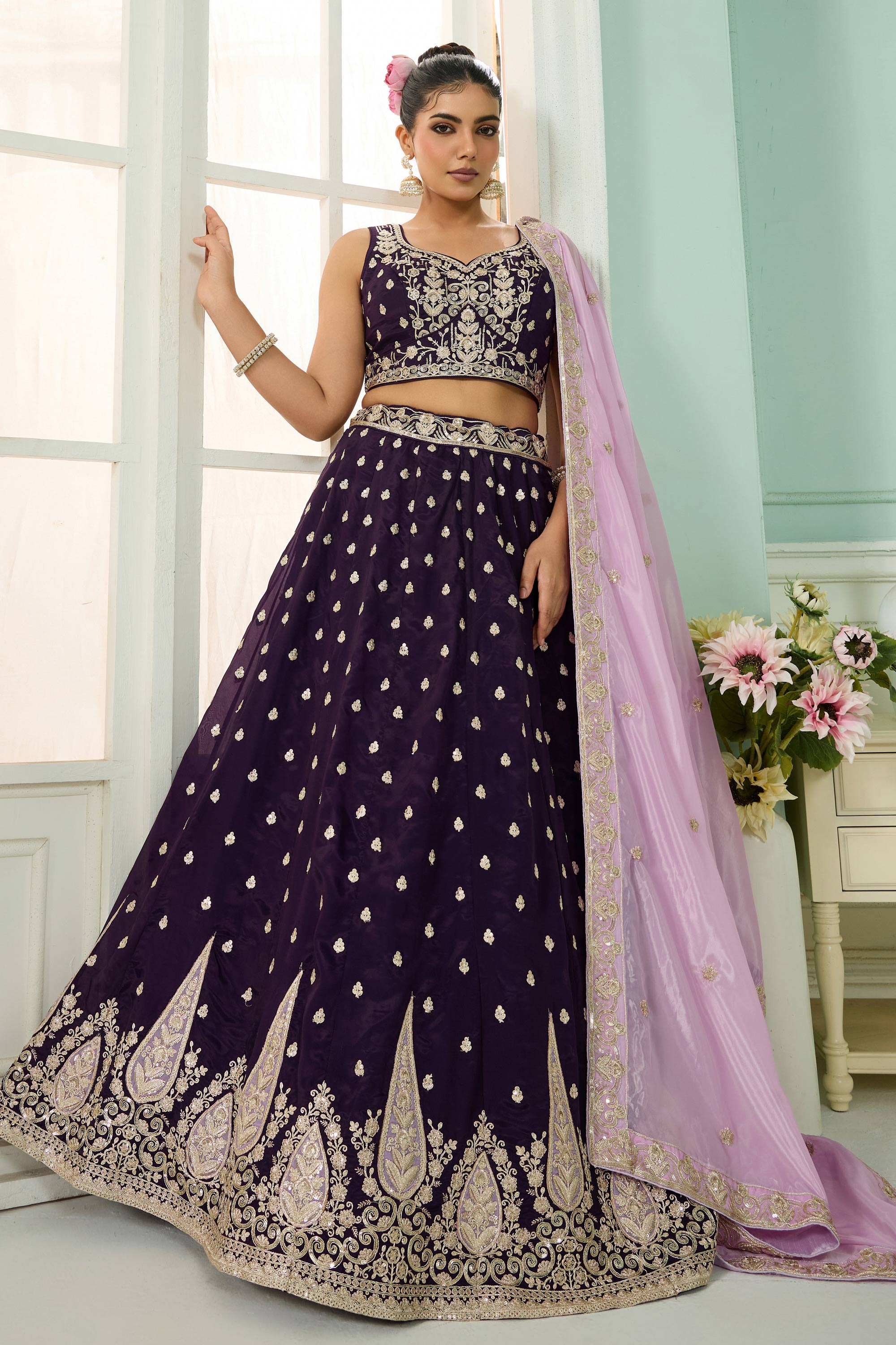 Embroidered Organza Purple Lehenga Choli For Wedding Wear