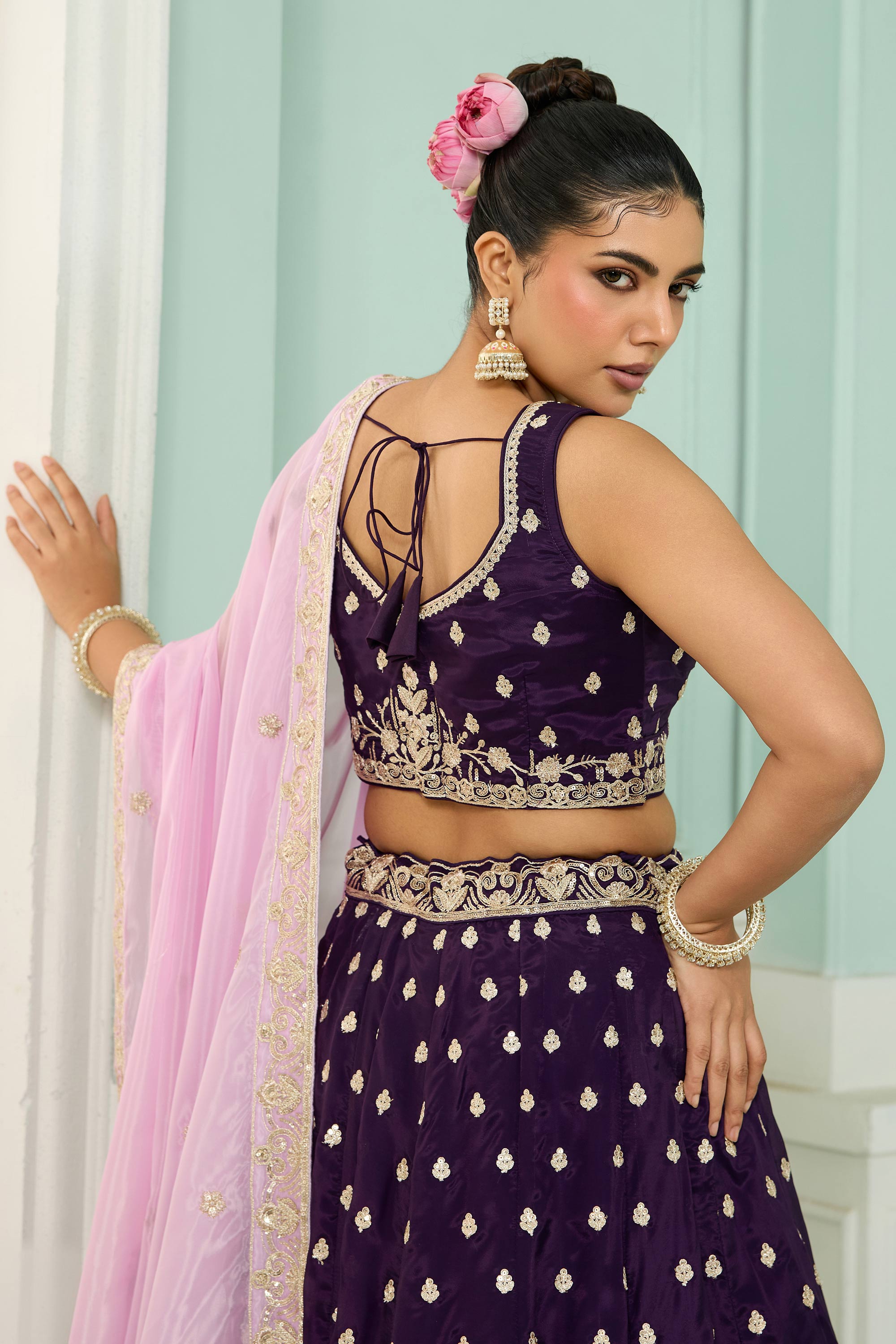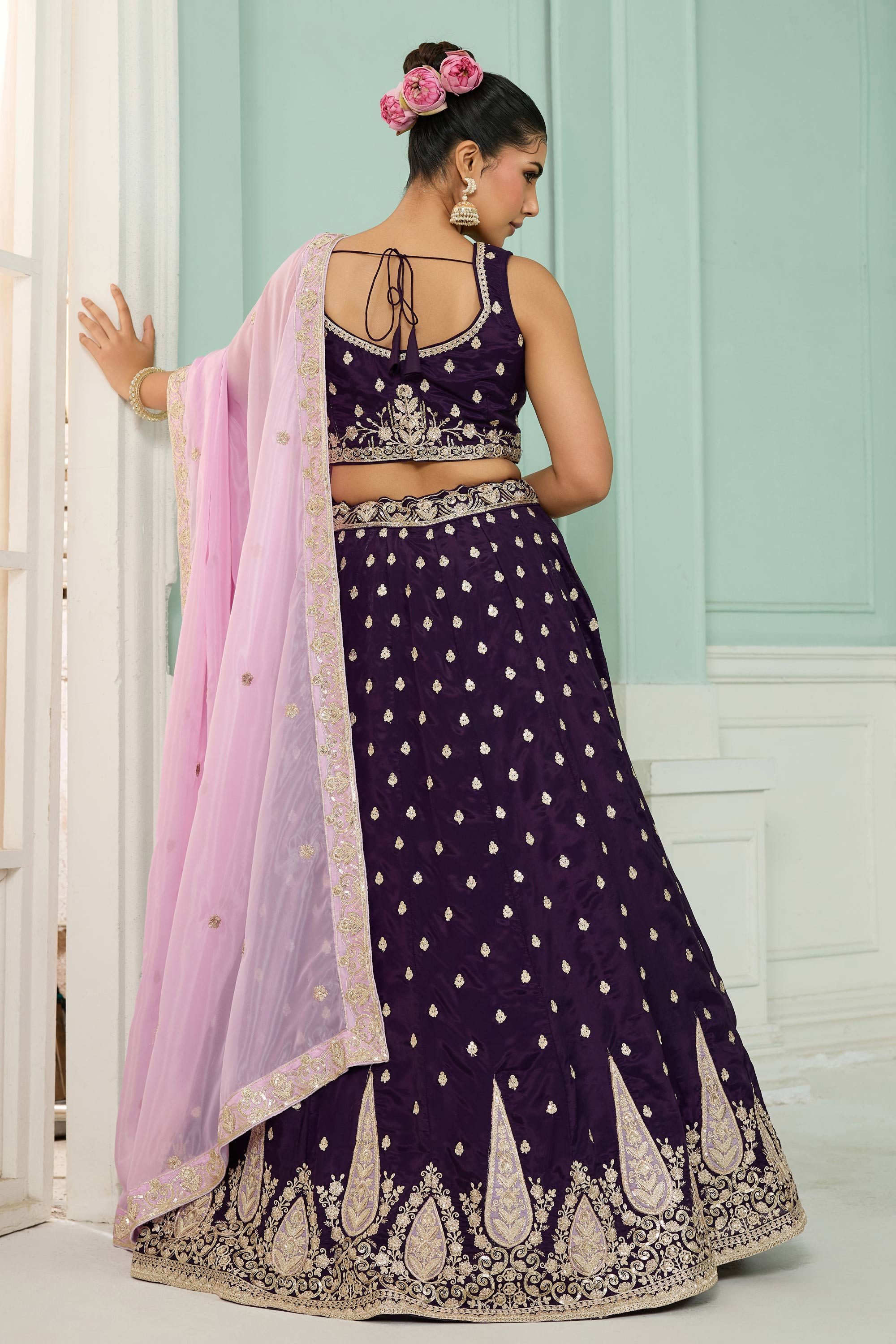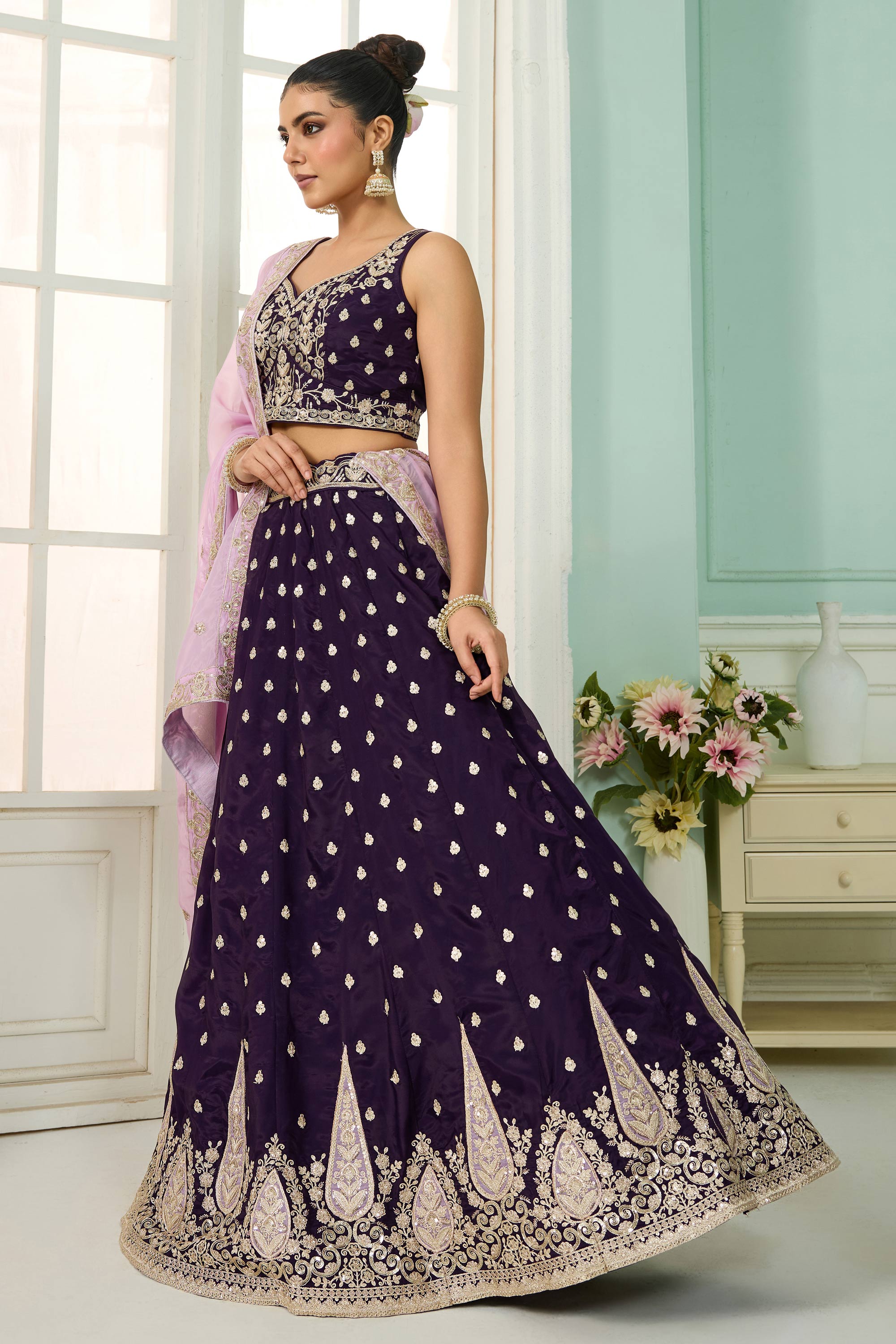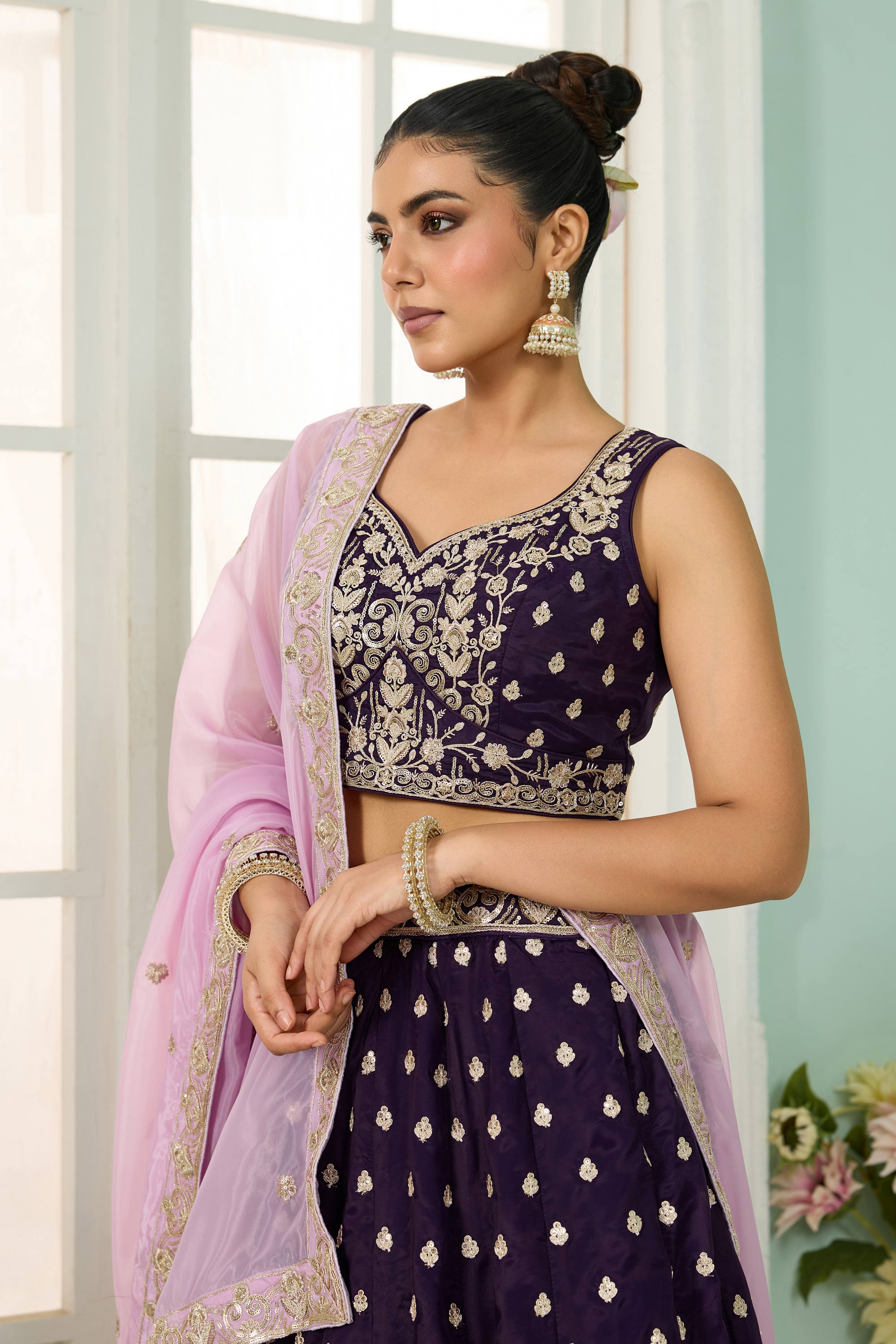 Embroidered Organza Purple Lehenga Choli For Wedding Wear