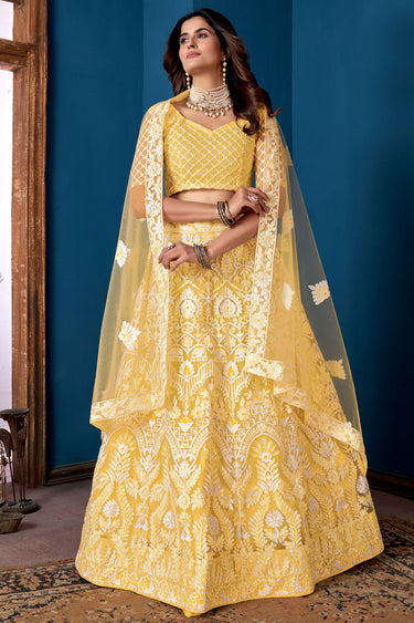 Embroidered Yellow Color Lehenga Choli In Net Fabric
