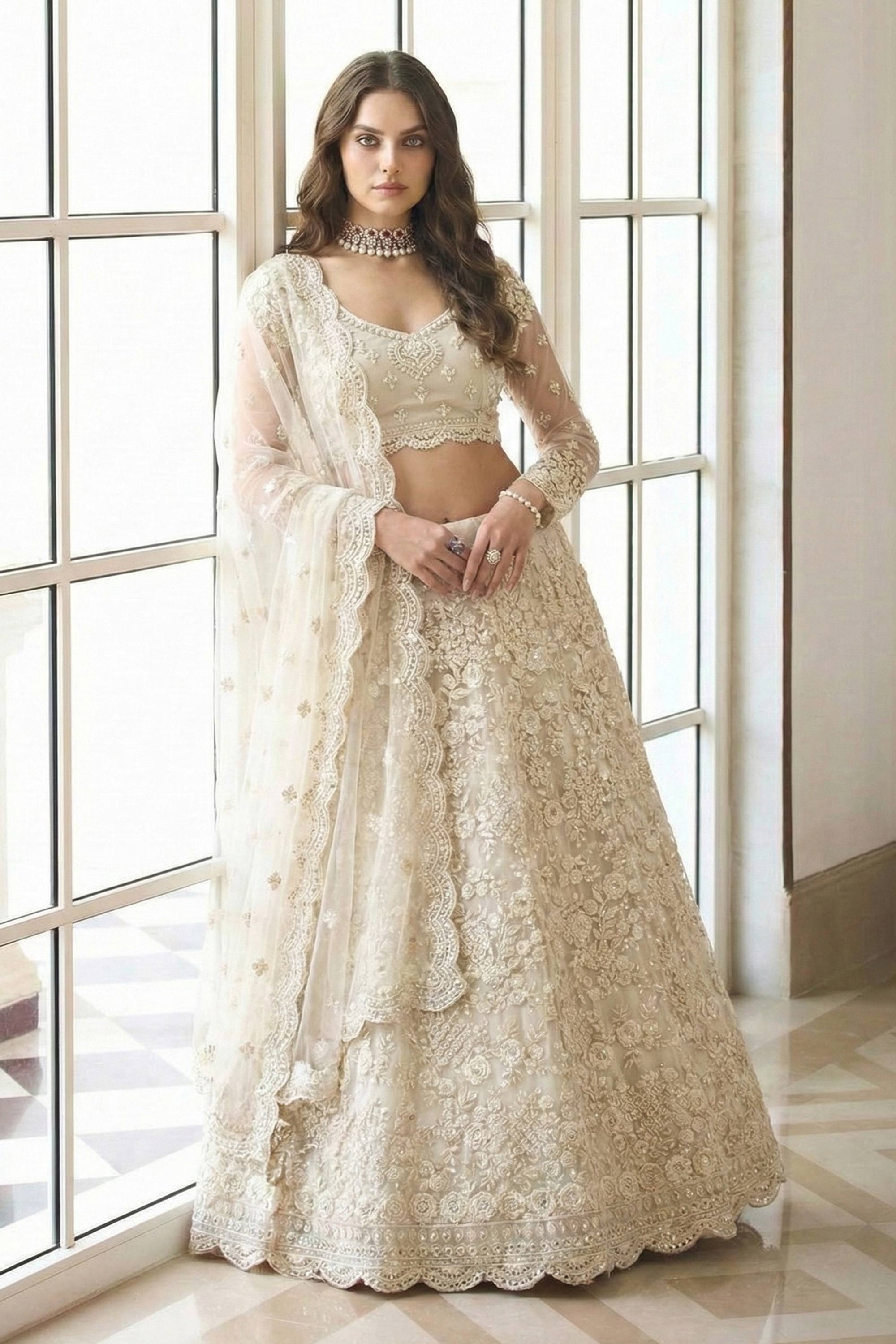 White Wedding Wear Net Embroidered Lehenga Choli With Dupatta