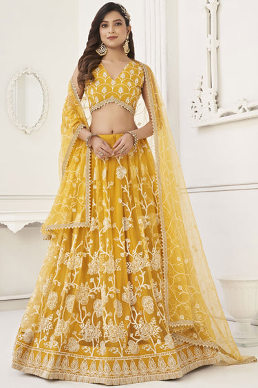 Yellow Designer Embroidered Lehenga Choli In Net Fabric With Alluring Blouse