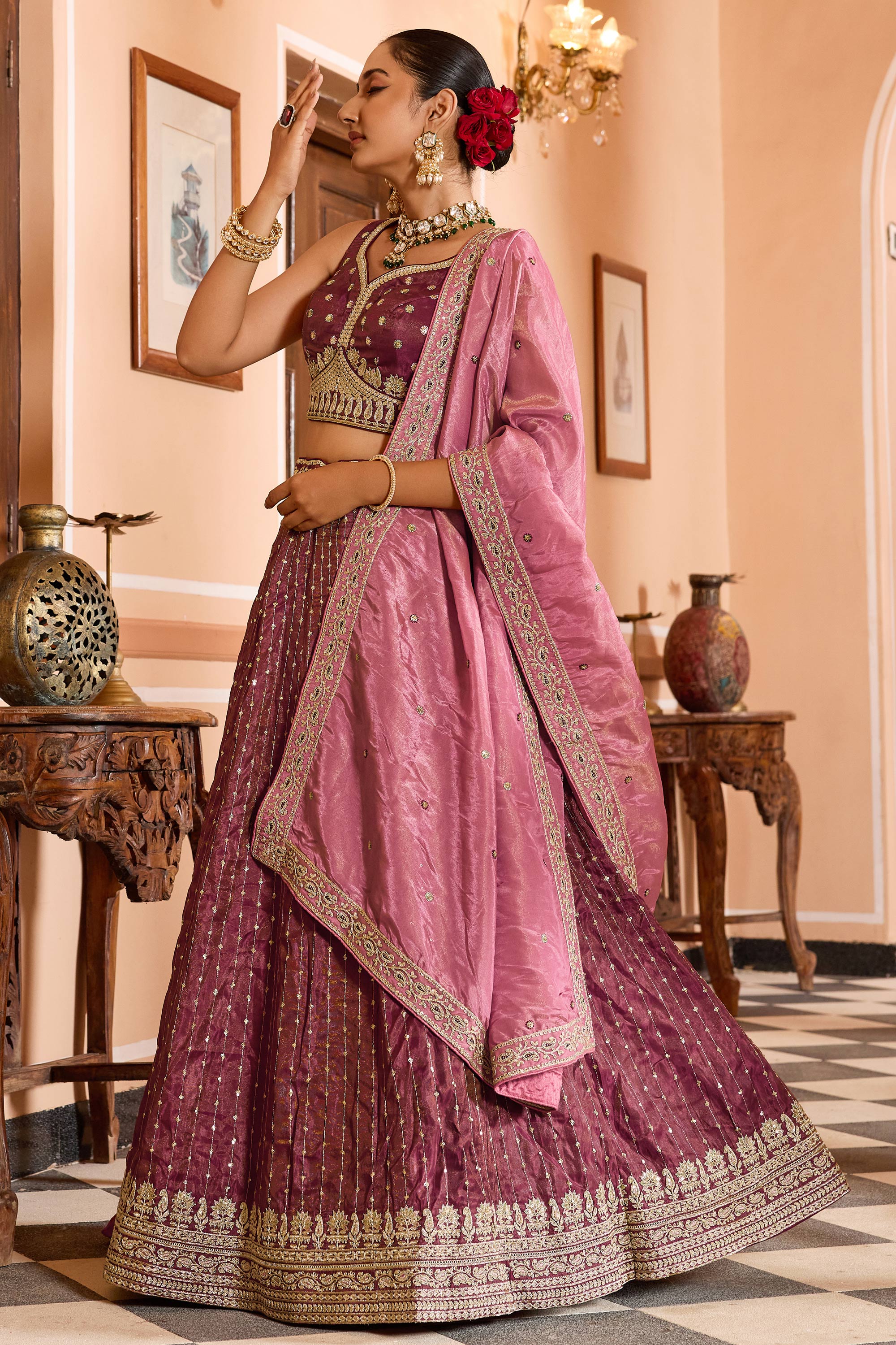 Heavy Embroidered Wedding Wear Lehenga Choi In Wine Color