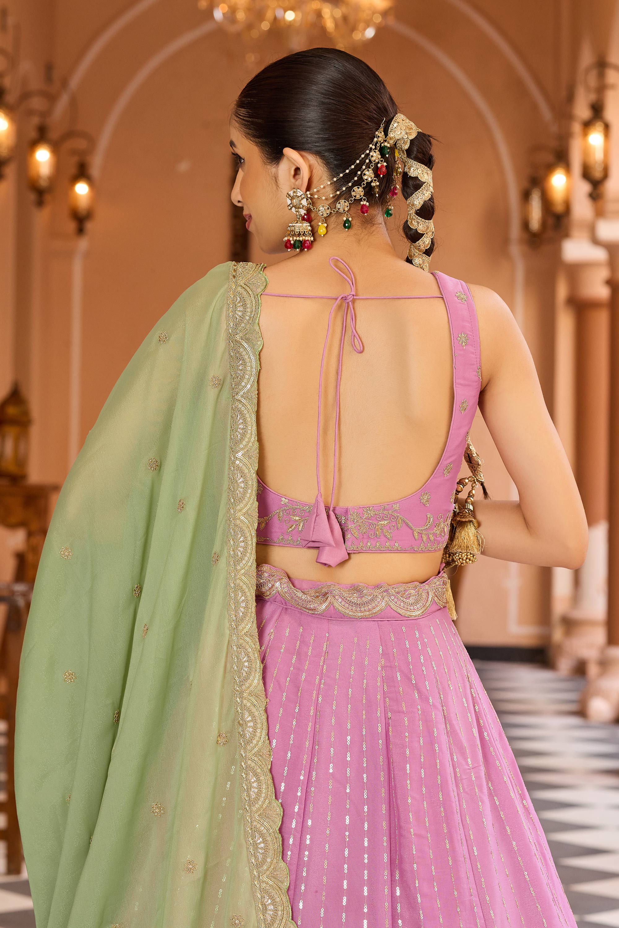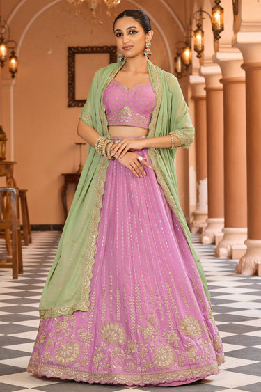 Pink Heavy Embroidered Wedding Wear Lehenga Choli
