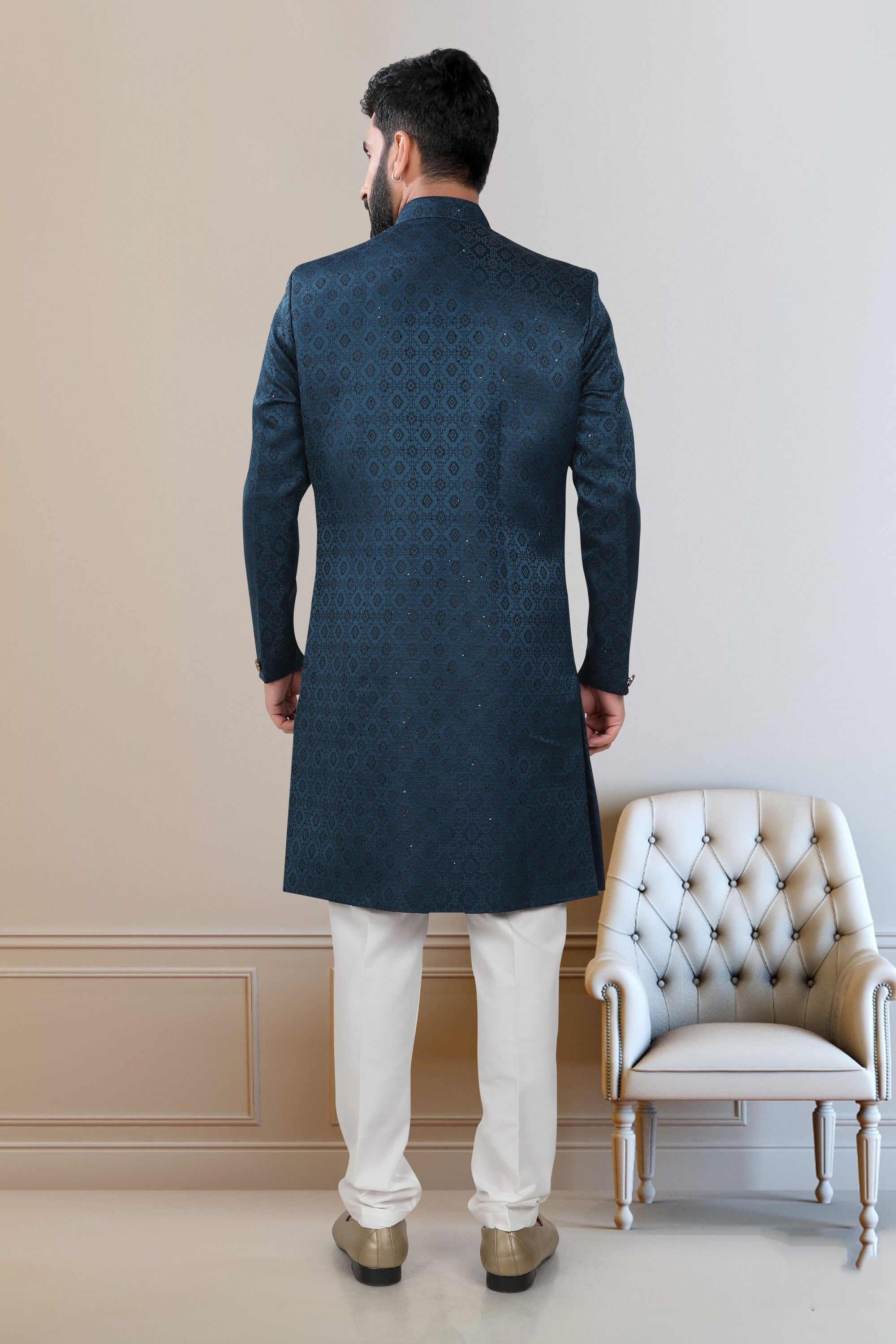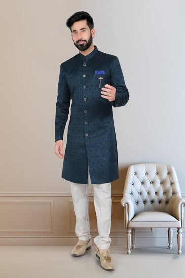 Blue Fancy Fabric Festive Wear Readymade Lovely Indo Western For Men