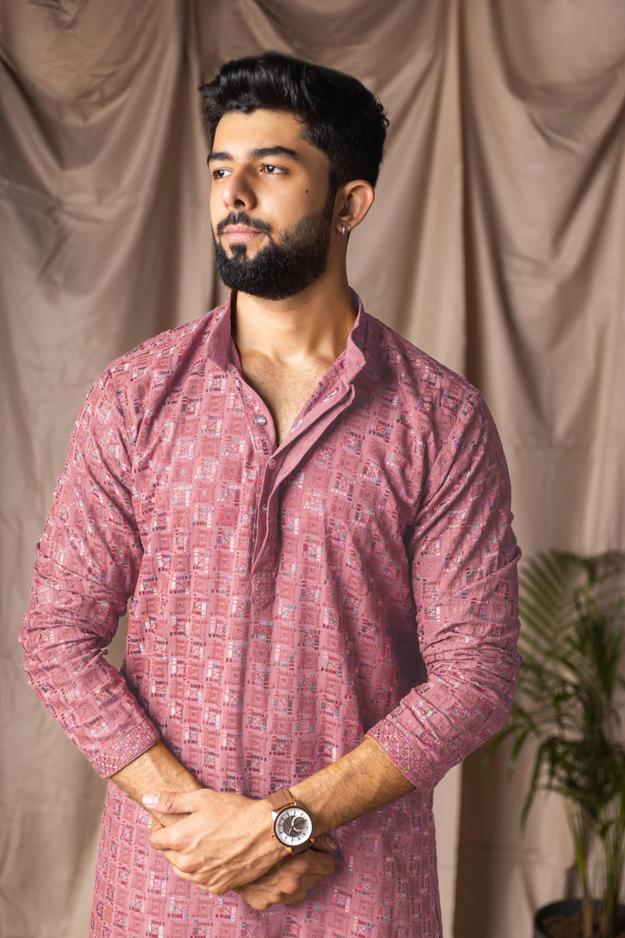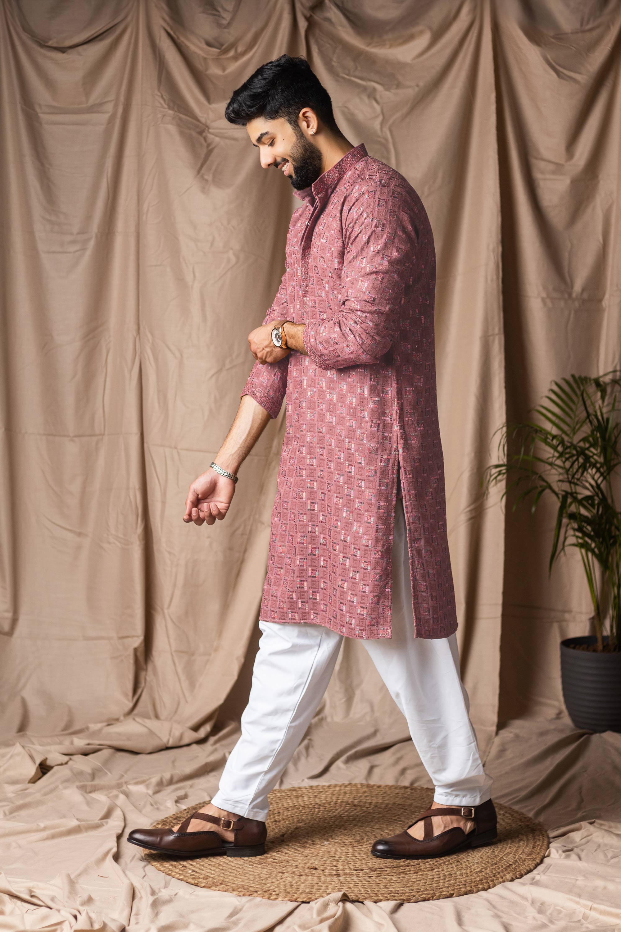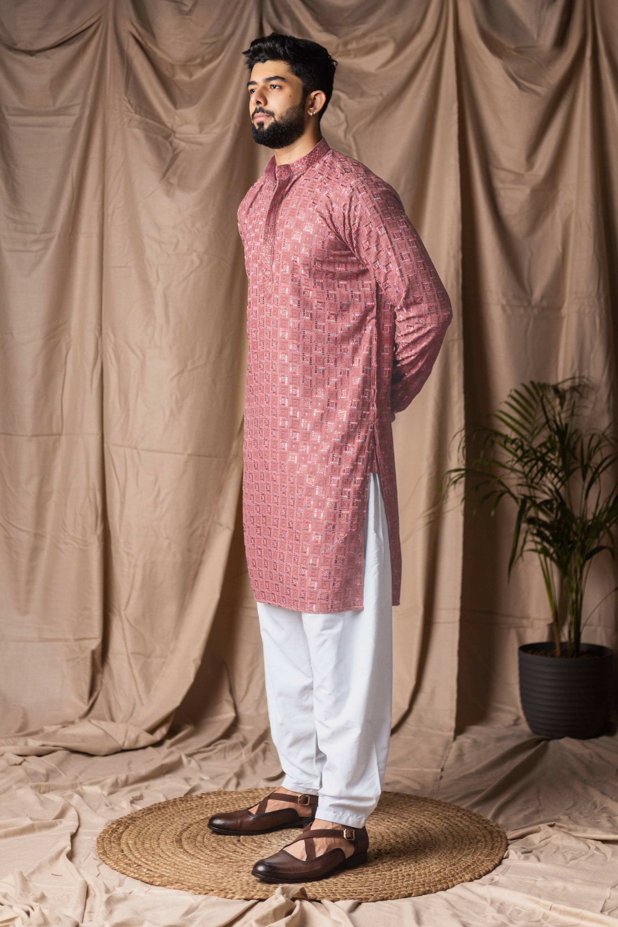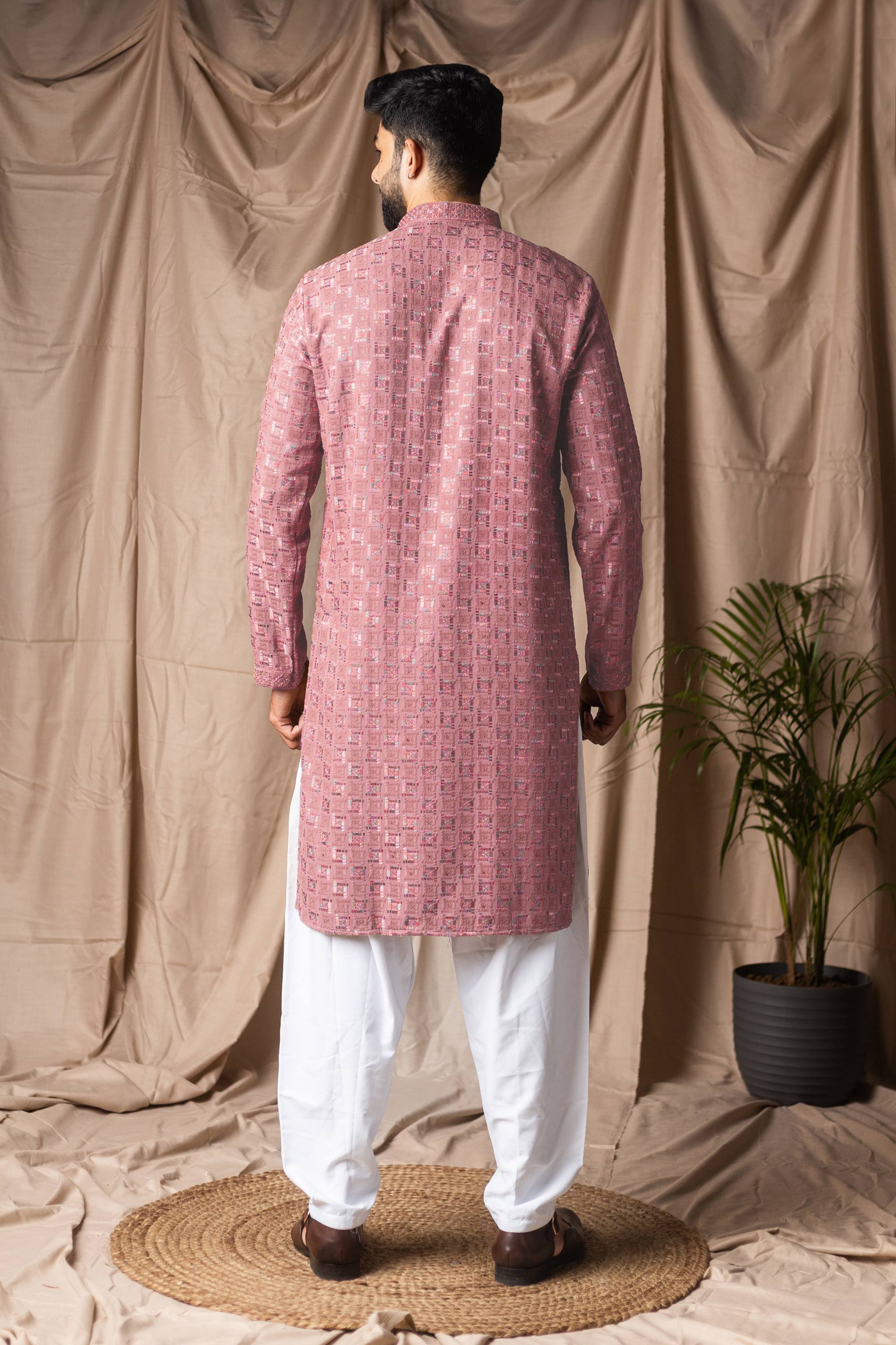 Viscose Rayon Pink Men Readymade Kurta Pyjama For Wedding Wear