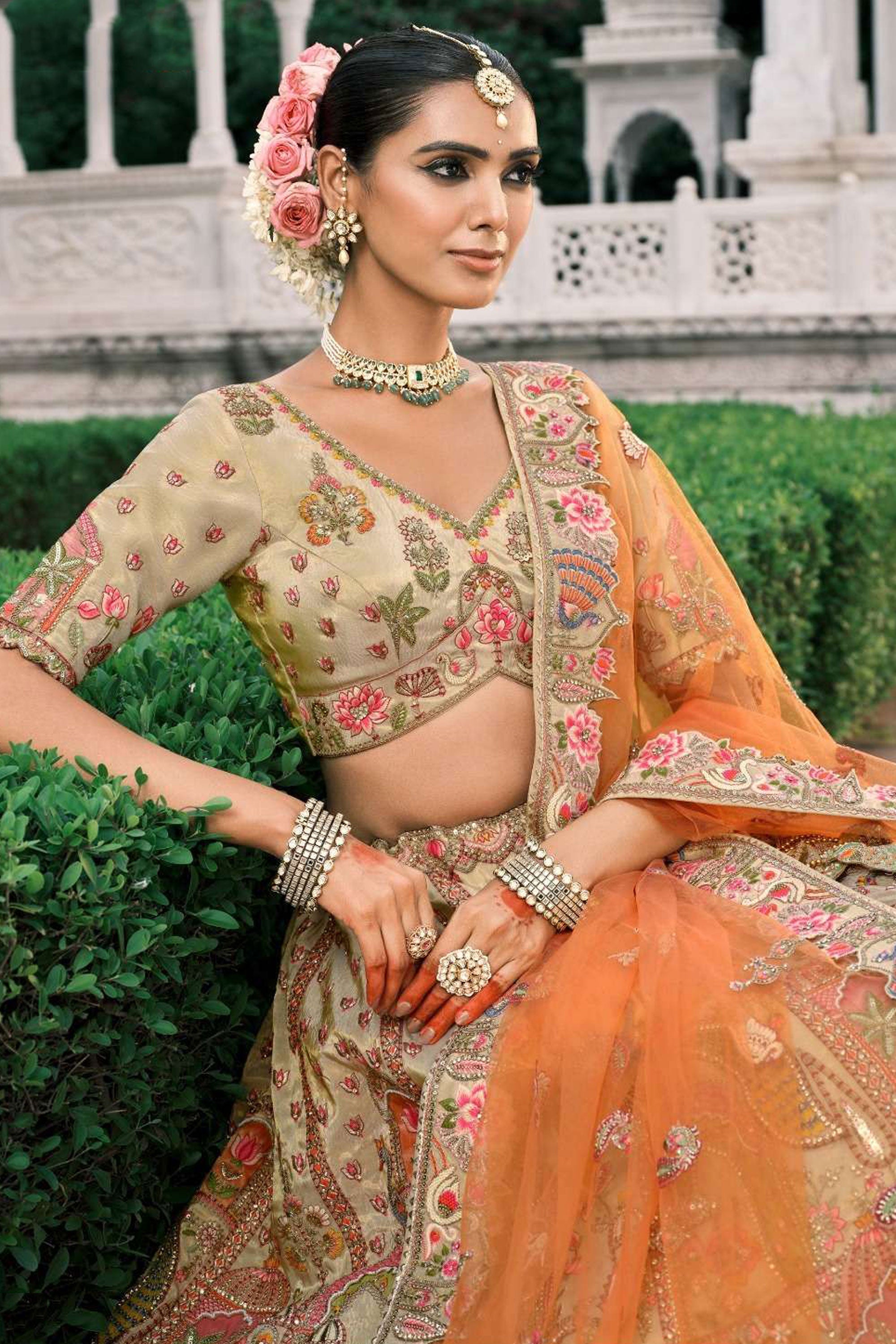 Art Silk Fabric Wedding Wear Beige Color Phenomenal Lehenga Choli