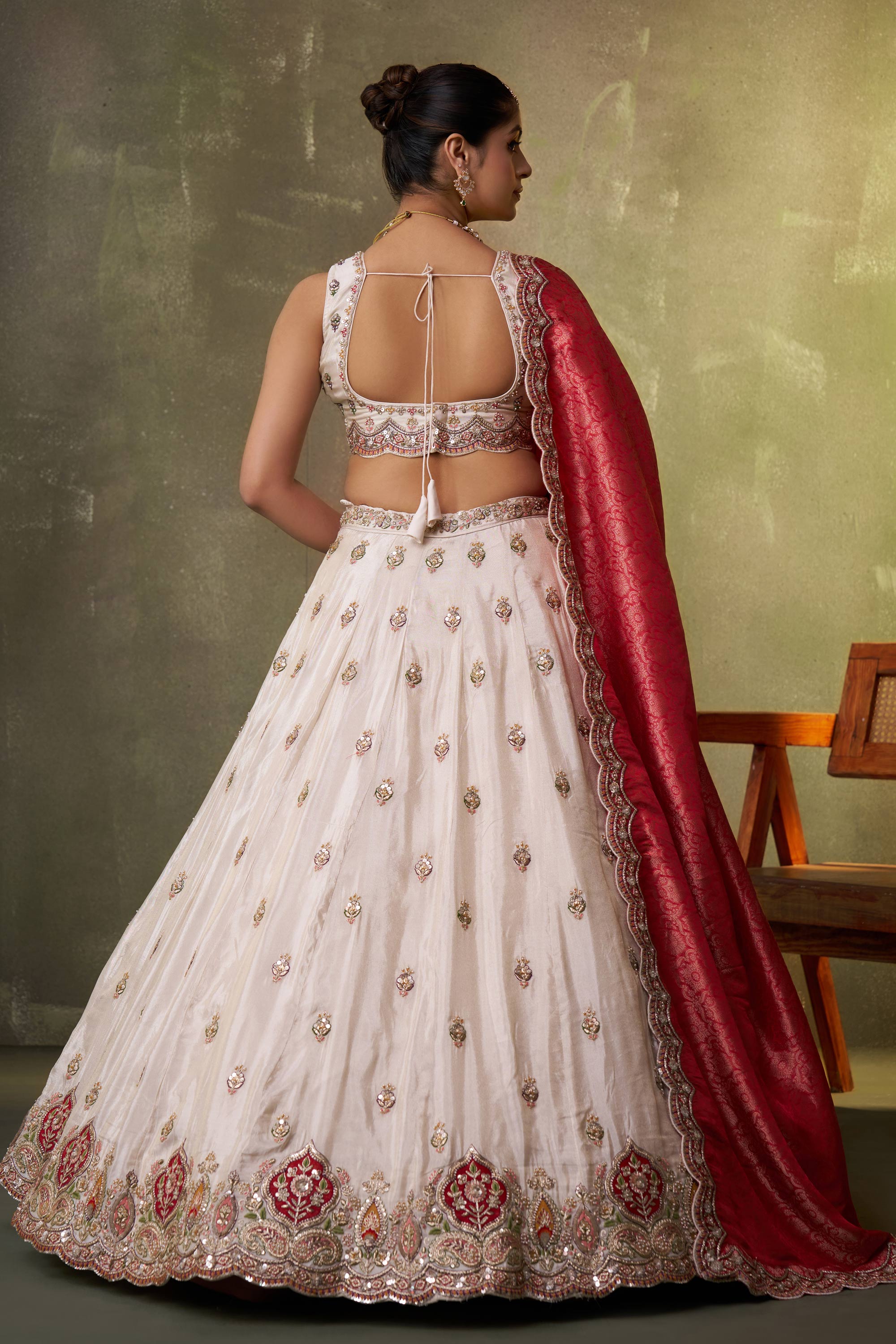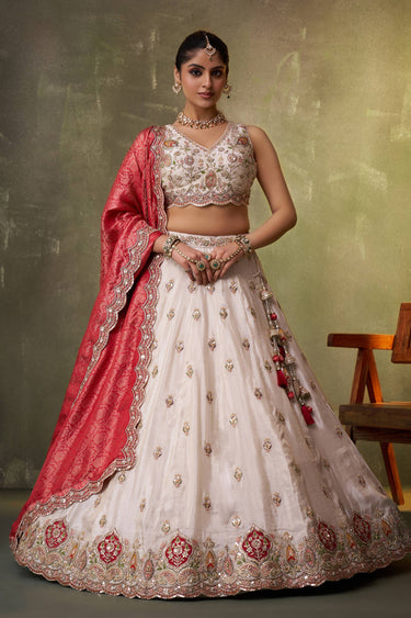 Embroidered Tissue Off White Lehenga Choli For Wedding Wear