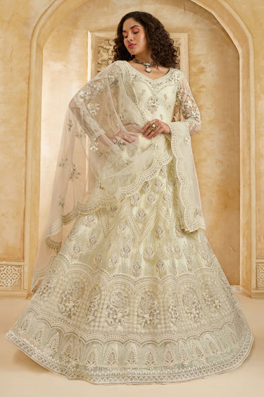 Lustrous Off White Heavy Embroidery Net Designer Lehenga Choli