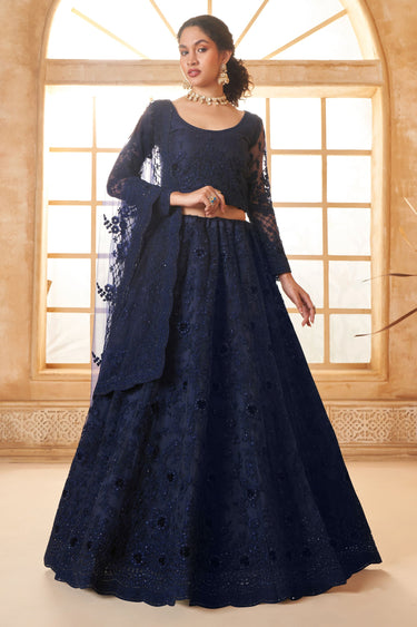 Navy Blue Blossom Embroidered Designer Lehenga Choli