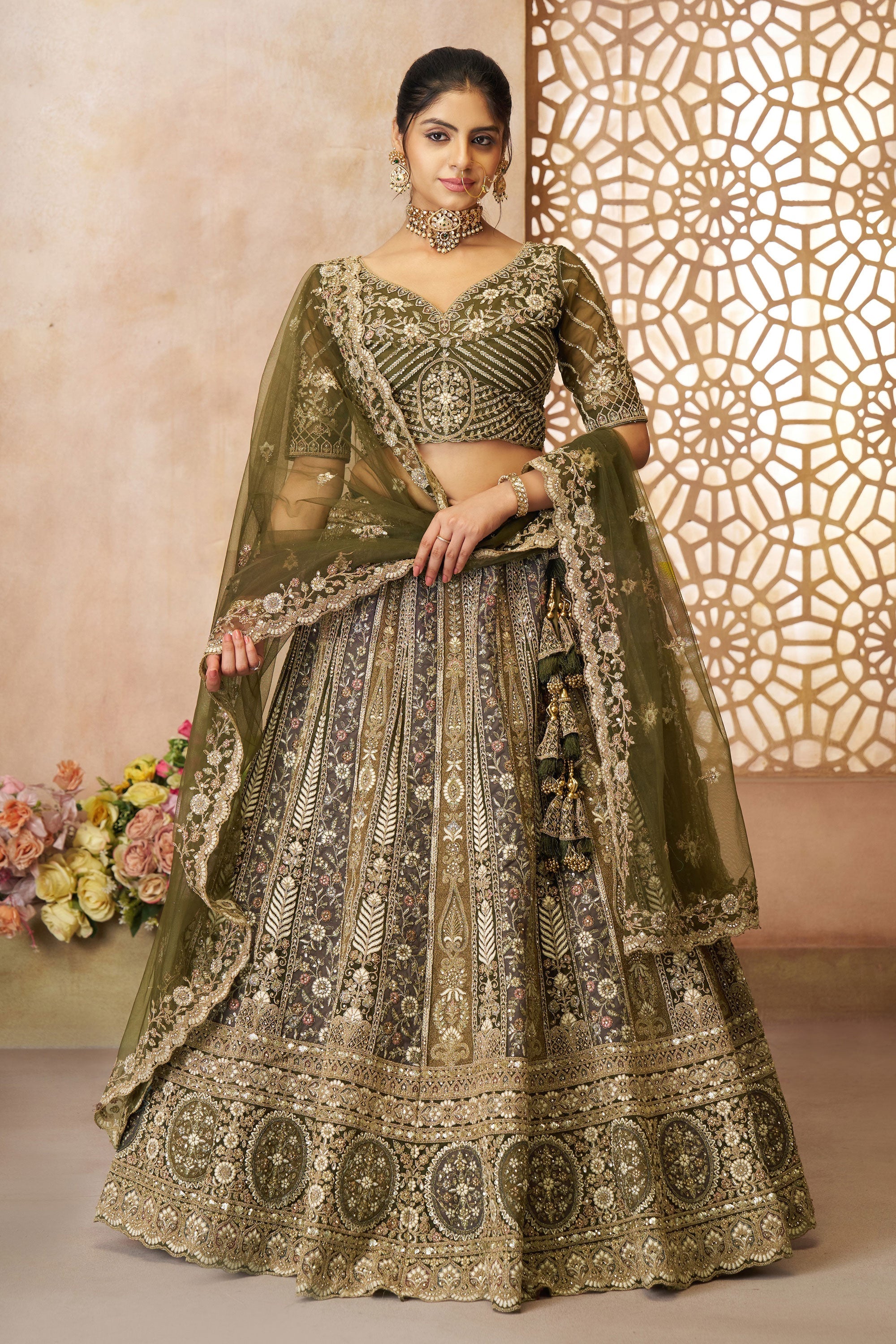 Net Fabric Green Designer 3 Piece Lehenga Choli