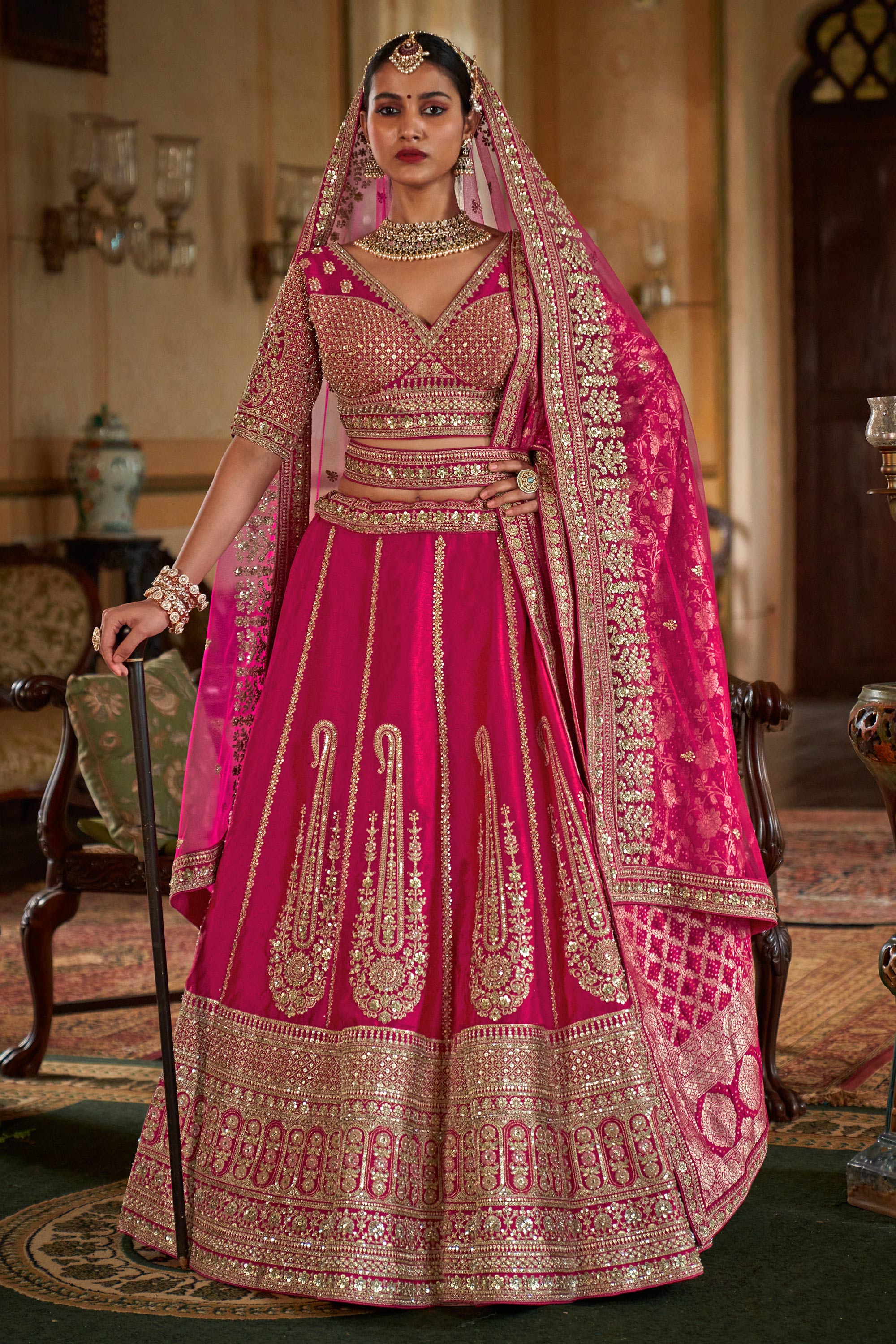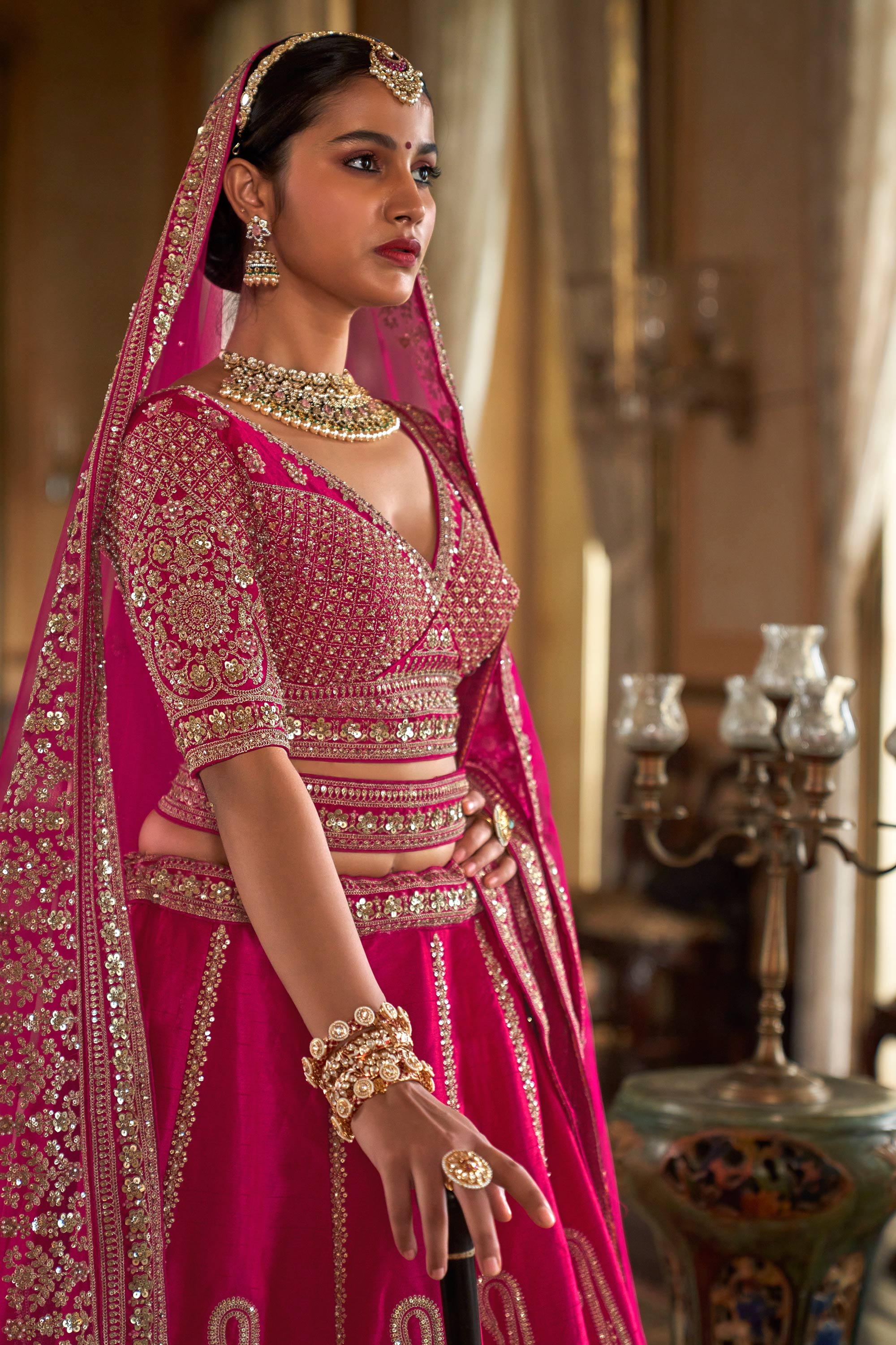 Make your special day unforgettable with this exquisitely designed bridal lehenga choli. Crafted from high-quality silk fabric, this attire radiates sophistication and charm. The intricate embroidery showcases exceptional craftsmanship, adding elegance to the entire ensemble. This lehenga choli is a perfect blend of traditional design and modern style, ideal for brides who wish to look timeless yet chic. The rich colors and detailed patterns ensure you stand out in every picture. Whether it’s your wedding ceremony or any other celebratory event, this outfit will make you feel radiant and confident. Pair it with matching jewelry and accessories for a stunning look that will leave everyone mesmerized.
