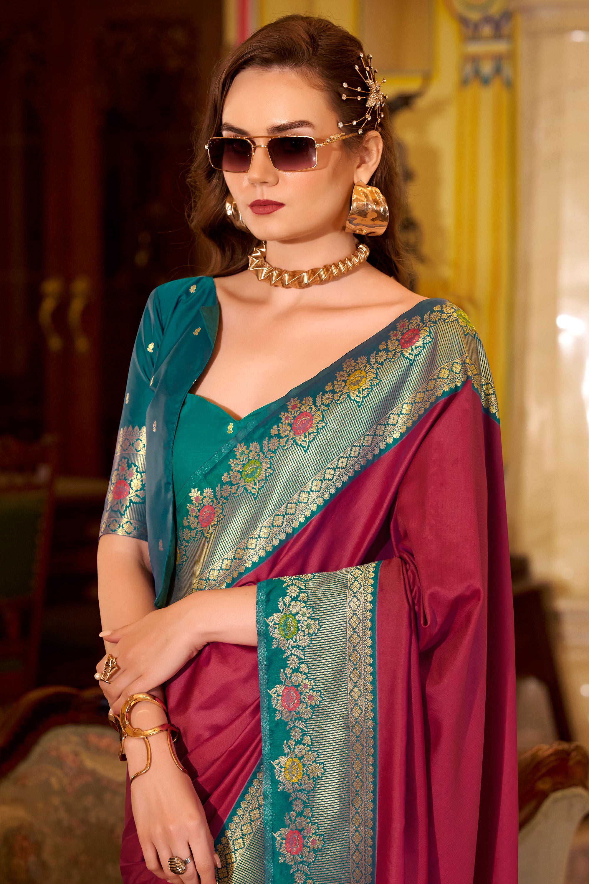 Ethnic Wine Art Silk Zari Weaving Saree